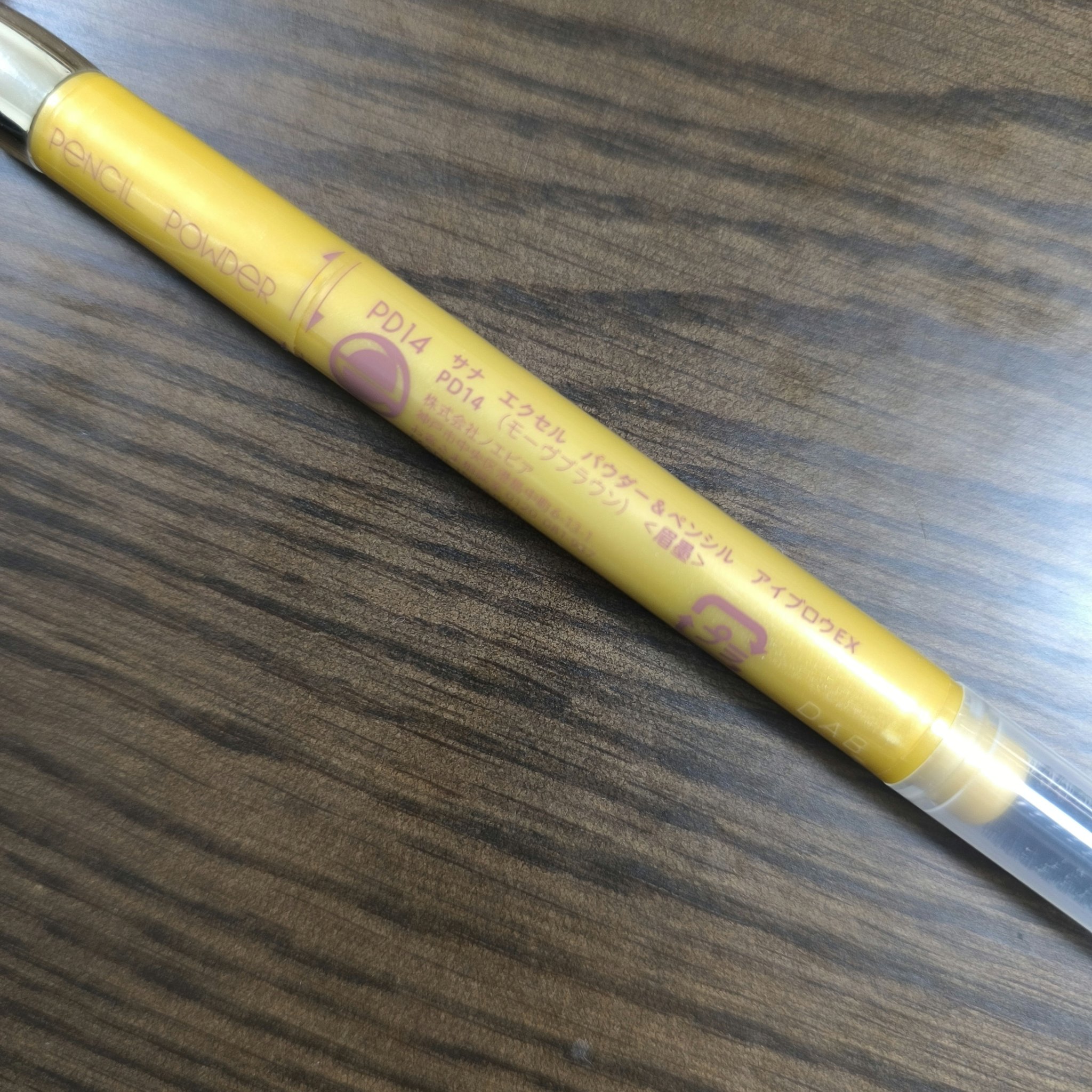 excelパウダー&ペンシル アイブロウEXPD14モーブブラウン何本リピートしたか忘れるレベルでお気に入り。とにかく描きやすいペンシル、チップで簡単に付けられるパウダー、スクリューブラシ付き。一本で済む手軽さが好き過ぎて手放せない。ただ1つ本当に毎回そうなんだけど、蓋がどこかへ行ってしまう…自分の管理が悪いんだけどそこだけが気になる(笑)廃盤にならないでほしい、一生使い続ける✍