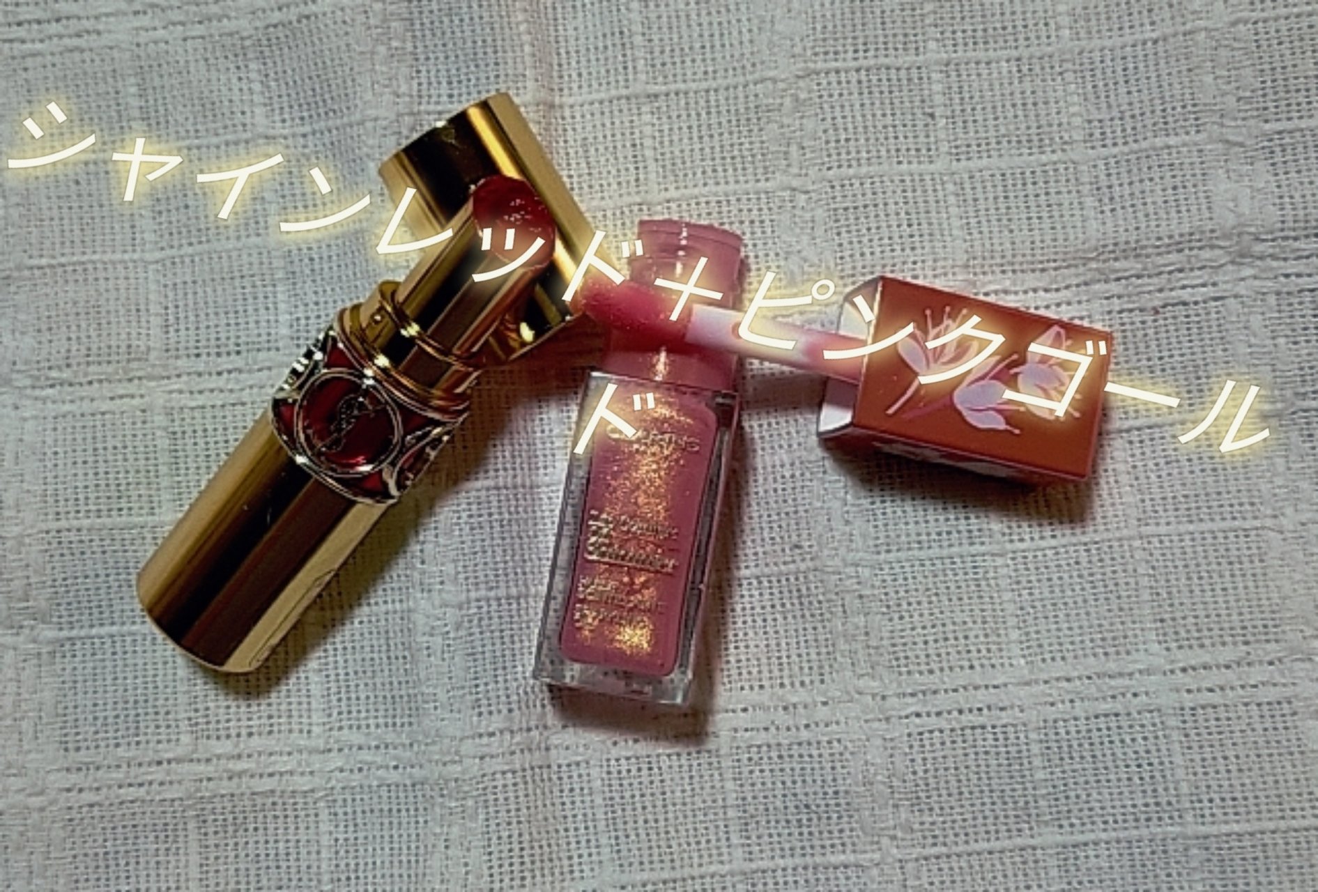 #一軍ツヤリップ比較リップメイク💄✨大好きな私には嬉しいイベントです。*゜\(・ω・)/゜*。♡*:.デパコス×デパコスのコラボレーション。笑【YVESSAINTLAURENTBEAUTEルージュヴォリュプテシャインNo.4】をリップブラシで薄く塗り←塗りすぎ注意⚠️細かいゴールドラメ✨が入った【CLARINSコンフォートリップオイルシマー09ローズペタル限定】を重ねてみると・・・単品で使うとケバケバしくなるヴォリュプテシャインがクラランスのリップオイルシマーの控えめなピンクと上品な細かいラメ✨によってイメージが変わるので気に入ってます(◍´꒳`)つやリップの中でレッド系はこの組み合わせが多いです👌👍♬*°皆さんも1度贅沢な気分になるので、デパコス💄×デパコス💄やってみてください٩(*˙0˙*)۶オススメちょっとのことで変化はするので新しい質感や色に出会えるかもしれませんよ❤️💛💙💜#一軍ツヤリップ比較#CLARINS#YVESSAINTLAURENTBEAUTE#ルージュヴォリュプテシャイン#コンフォートリップオイルシマー09ローズペタル限定#コンフォートリップオイルシマー#デパコス#限定色#コンフォートリップオイルシマー09#クラランス#イブサンローラン#ルージュヴォリュプテシャインNo.4