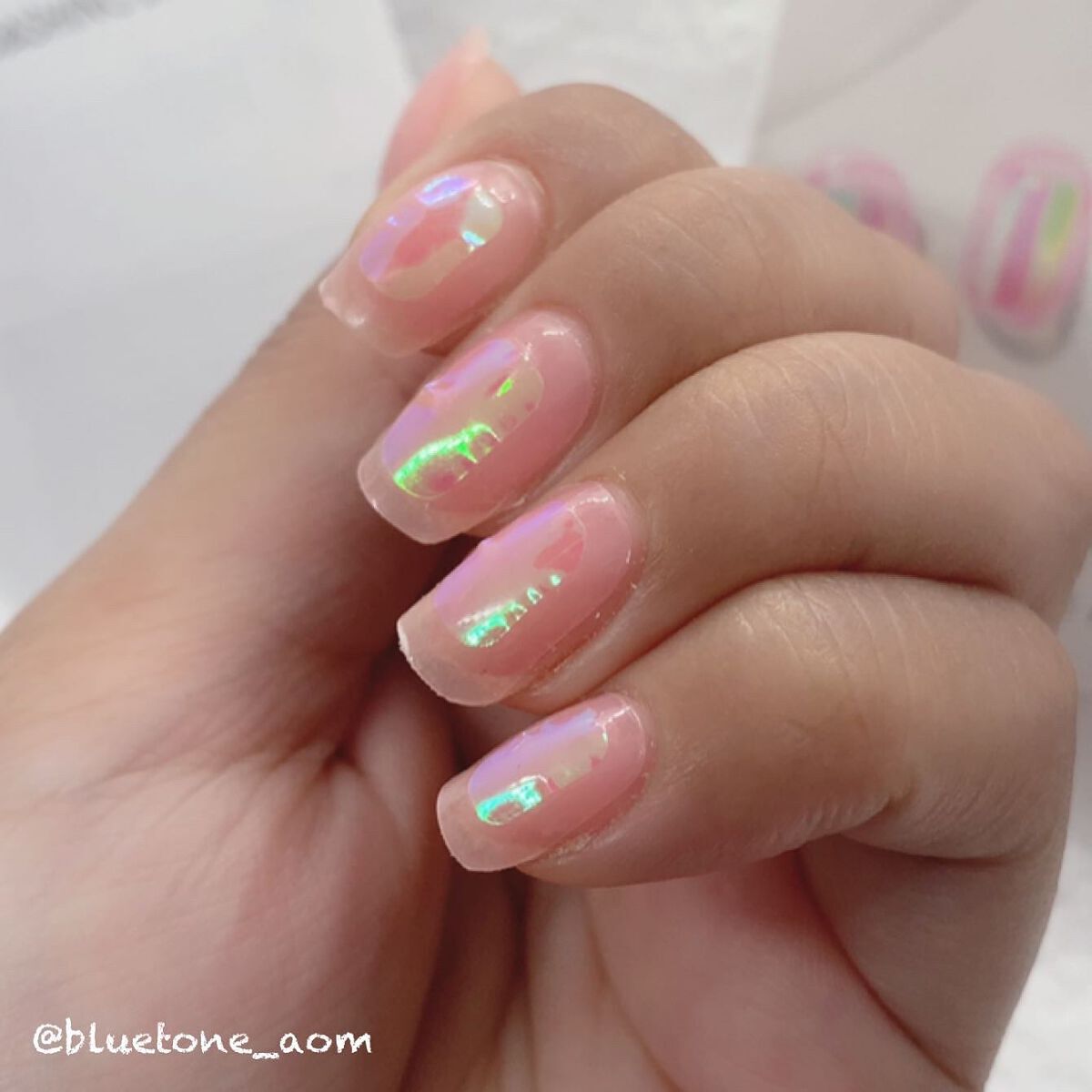 DASHINGDIVAglazePinkDew…💕厚み出してみました!Seriaのベースジェルとcocoronailのノンワイプトップ使いました(ᐢ˙꒳˙ᐢ)♡くまさんは前にどっかで買ったやつです(笑)厚み出したら結構いい感じなのでは!?ちゃんとうるうるネイル感出たのでは!?(自分だけの判断やと自信ないやつ)フィルムのシワに関してはシールと同時なのでこれはもうしょうがない!自分でやる方がシワとか気をつけることはできるけど時短でシールでここまで再現できるならわたし的には嬉しい!あと貼ってみるとベースカラーが肌なじみ良すぎるのとフィルムも反射がめっちゃ強いタイプでは無いから派手になりすぎないから1~2本仕込んでもオフィスネイルでも大丈夫な気がする!(気がするだけで、オフィスネイルどこまでがokかわからないので保証は出来ないですが🫠)色んな色出たら面白いなぁ〜!自分でやるのも楽しいけど時間無いときとかめちゃくちゃありがたい(¨̮)厚み出したから強度もしっかりあるし!私的にはコーティングすることをおすすめしたいです!デザイン的にもキラキラ感増すし、持ちも良くなるし✩*॰¨̮やっぱりオーロラ系はずっと指見ちゃうな🥺#nail#selfnail#ネイル#セルフネイル#ジェルネイル#セルフジェルネイル#セルフジェルネイル初心者#セルフネイル初心者#セルフネイル部#セルフジェルネイル部#ネイルシール#ジェルネイルシール#ネイルシール貼っただけ#ネイルステッカー#シールネイル#オーロラネイル#うるうるネイル#氷ネイル#cocoronail#cocoronailでつくったよ#DASHINGDIVA#glaze#セリアジェルネイル#やっぱこれやねん