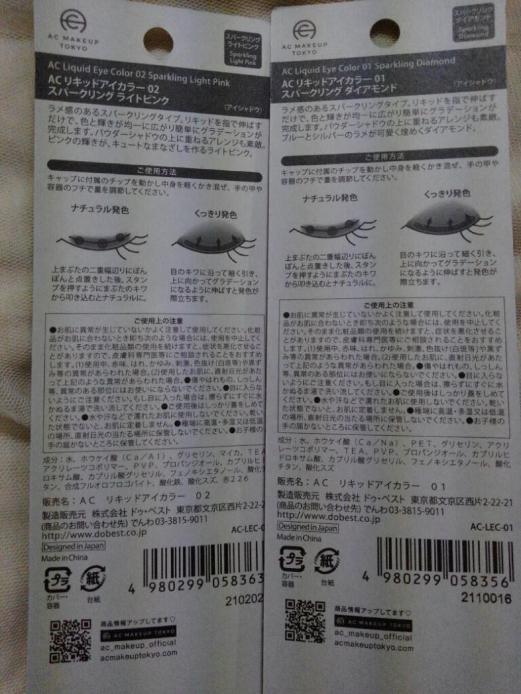 【100円とは思えない輝き…】AC#リキッドアイカラー【色味】▶︎01スパークリングダイアモンドクリアベースに、青やパープルに輝くオーロララメがたっぷり‼️▶︎02スパークリングライトピンクほんのり赤みのあるピンクに、ブルーラメたっぷりの血色...