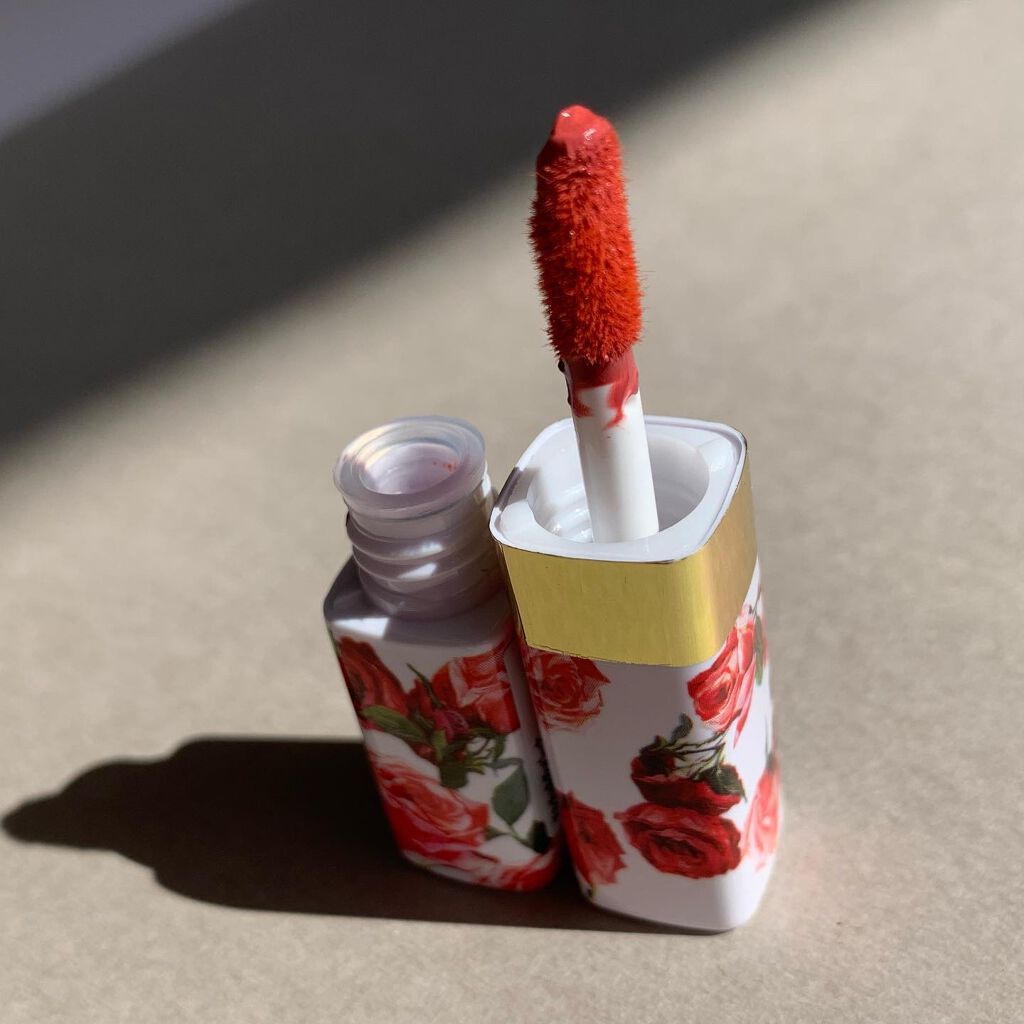 正直ブラウンは苦手カラーなのですが、肌にのせるとピンクみも感じるので暗くならない。 ひと塗りでなじみやすく、想像以上に使いやすかった! 粒子が細かく発色の良さも◎ 上品でありながらさわやかなフルーティフローラルの香り。 さすがのドルガバ様…💎✨ ちっちゃくてコロンとしたミニサイズのリップも。 ローズとなっていますが、青み強すぎないので私は使いやすいカラーだった! 発色も良く、落ちにくい。 スウォッチした手のリップも全然落ちずびっくり! 薔薇パケがゴージャスでほんとに可愛い。