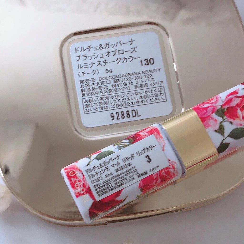 ブラッシュオブローズ ルミナスチークカラー130は薄くも濃くも付けれます♡ ドルチェシモ マット リキッド リップカラー3は粘膜カラーで肌タイプを選ばないお色♡ これは現品買いしたいほど気に入りました❤️ ドルチェ リリー オードトワレ クセのないヘアロコンのような優しい香りです✨ パッケージも素敵で質も⭕️