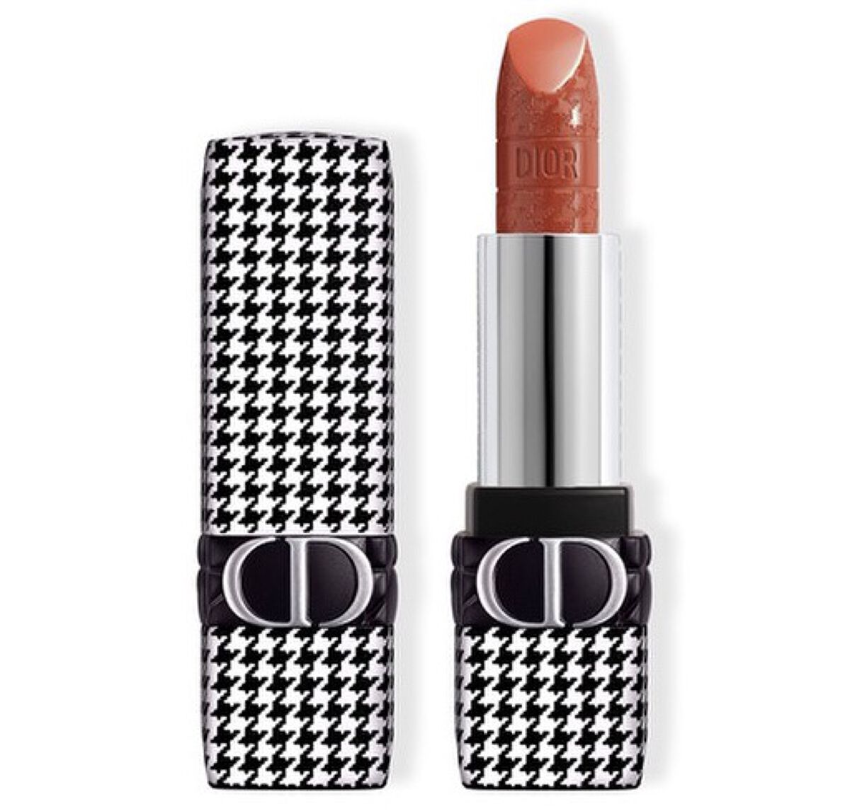 千鳥格子のパッケージが出ると知った時には絶対買う!と決めたアイテムでした! 開けてみると全体的に千鳥格子の柄でツヤツヤしてるわけでもなくサラッとした触り心地! 真ん中の黒い部分だけマットでデザインに沿って凹凸がありました! フタの上はCDとロゴがあって上から見ても可愛い! 中のリップ部分にも千鳥格子の彫刻が入っていたり反対側はDIORと彫刻も入っていました! ツヤ感もありオレンジ味のあるブラウンカラーで元気を与えてくれるカラーでした! 千鳥格子のパッケージは注目を集めそうなので外出中持ち歩きたいリップです! 他のカラーもあるのでオンラインで見てみてね!