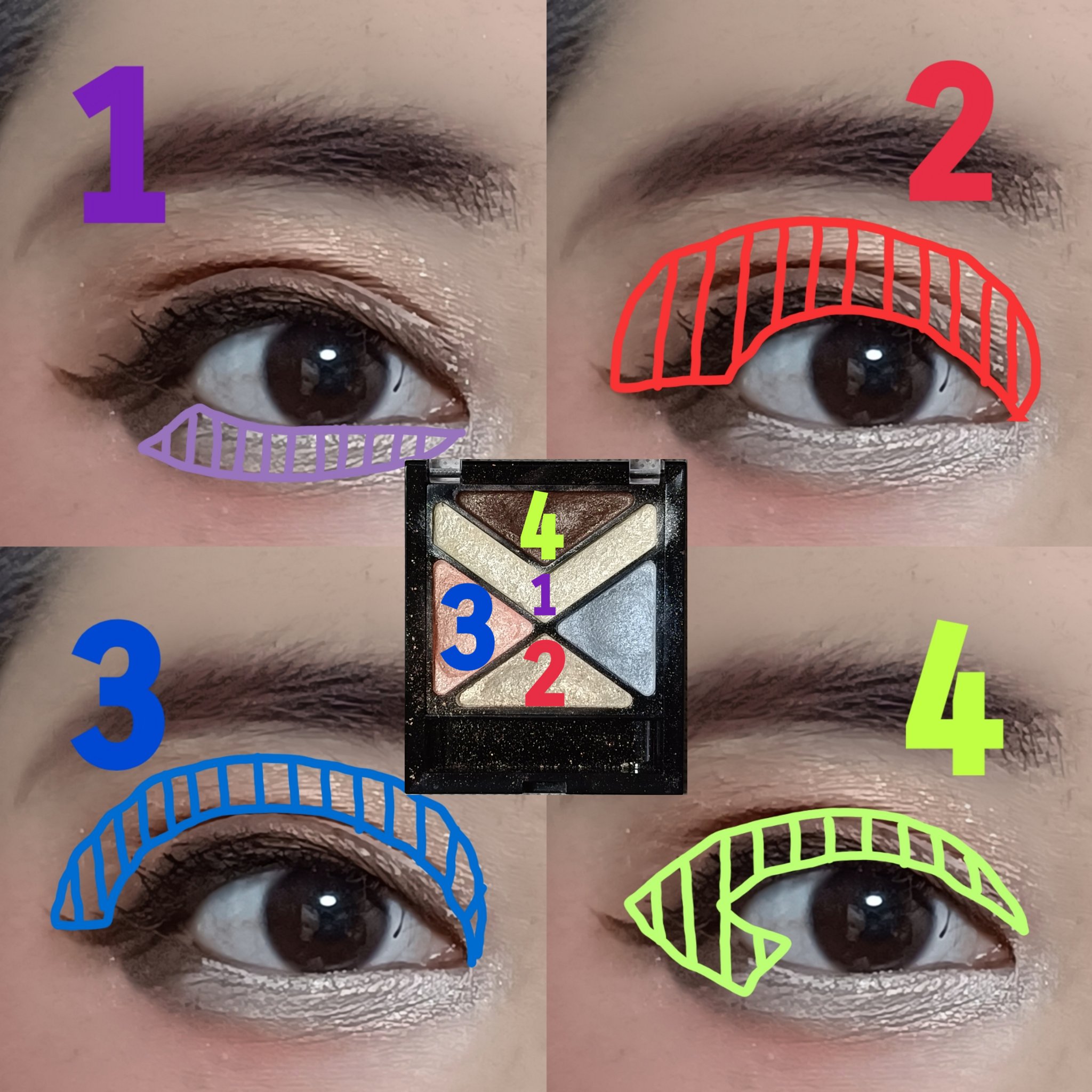 日焼け止め・化粧下地 アリィー クロノビューティ ミルクUV EX 上下左右によく振ってから顔全体に塗布する。 アイブロウ ちふれ アイブロー パウダー PK10 ピンク系ブラウン しっかり眉になるように濃いめにかく。 グリッター K-パレット 限定 リアルラスティング グリッターシャドウ 下まぶた全体に塗布する。