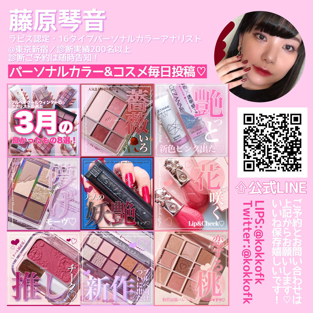 ブルベ冬が選ぶマキアージュ新作パレット/今回はMimiTV様を通じて提供頂きました!自由自在にカスタマイズして使えるマキアージュの新作マルチパレットです♡────────────マキアージュドラマティックアイカラー(マルチ)VI745パープルスイートポテト(¥1980)ドラマティックチークカラー(クリーム)RS421ピーチソルベ(¥1980)ドラマティックリップカラー(グロッシー)PK431チェリージュレ(¥990)────────────店頭、オンラインなどで購入可カスタマイズできる運命のカラーで、あなただけの「運命パレット」完成。3/21発売のマキアージュ新作は、どどんとアイシャドウからチーク、リップまで全てをカスタマイズできるアイテムが登場♡それぞれ数種類ずつあるので完全に自分ぴったりのパレットが作れます!☞VI745パープルスイートポテト────────────深みのあるパープル×グレー深みが得意なブルベ冬におすすめ!16タイプだとクールウィンター、ビビッドウィンター、ディープウィンターに。顔タイプ直線寄りだとさらにおすすめ◎☞RS421ピーチソルベ────────────明るくくすみのないツヤ感青みピンクツヤが得意なブルベに幅広くおすすめ!顔タイプ曲線寄りだとさらにおすすめ◎☞PK431チェリージュレ────────────くすみのないまろやかな青みピンク明るさが得意なブルベ夏におすすめ!16タイプだとブライトサマーやライトサマーに特におすすめ。顔タイプ子供×曲線だとさらにおすすめ◎ケースやチップなどは全て別売りなのでそこだけ注意してください…!皆さんもぜひチェックしてみてね❤︎-Twitter:@kokkofkInstagram:@kokkofkいいねコメント嬉しいです❤︎見返すときはクリップがおすすめ!おすすめタイプはラピスの16タイプカラーメソッド®︎に基づくアナリスト個人の見解です。#わたしの運命のパレット#マキアージュ#マキアージュ_アイシャドウ#マキアージュ_ドラマティック#マキアージュ_リップ#マキアージュ_パレット#maquillage#新作コスメ#ブルベ夏#ブルベ冬#ブルベメイク#ブルベ夏_リップ#ブルベ冬_アイシャドウ#ブルベ_アイシャドウ#ブルベ_リップ#ブルベ冬_メイク#ブルベ夏_メイク#ブルベ夏_チーク