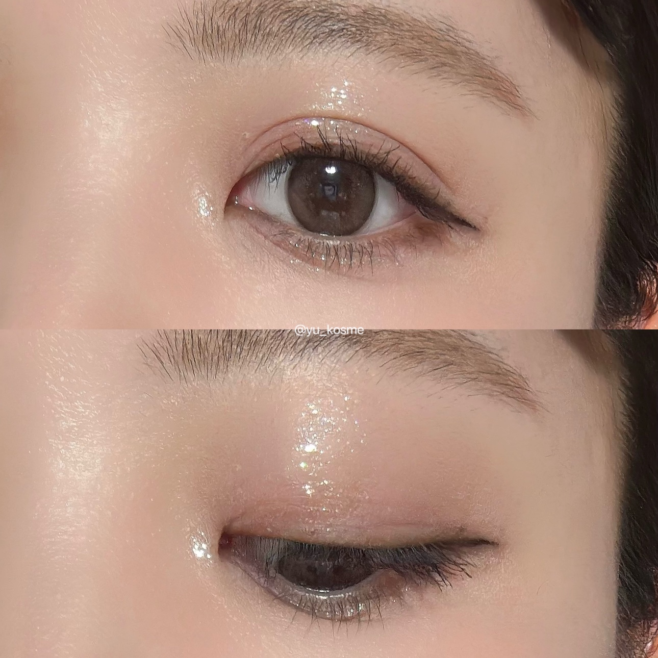 もちろん使い心地はどちらも変わらず! ガラスを砕いたようなザクザクラメなのにひとつひとつが細かいから派手すぎなくて使いやすい♥ 正直、まぶたに塗って写真撮るとどちらもそこまで違いはありませんでした(笑) バズらないのが意味わからないくらい素敵なアイテムなのでぜひ買ってみてください💕