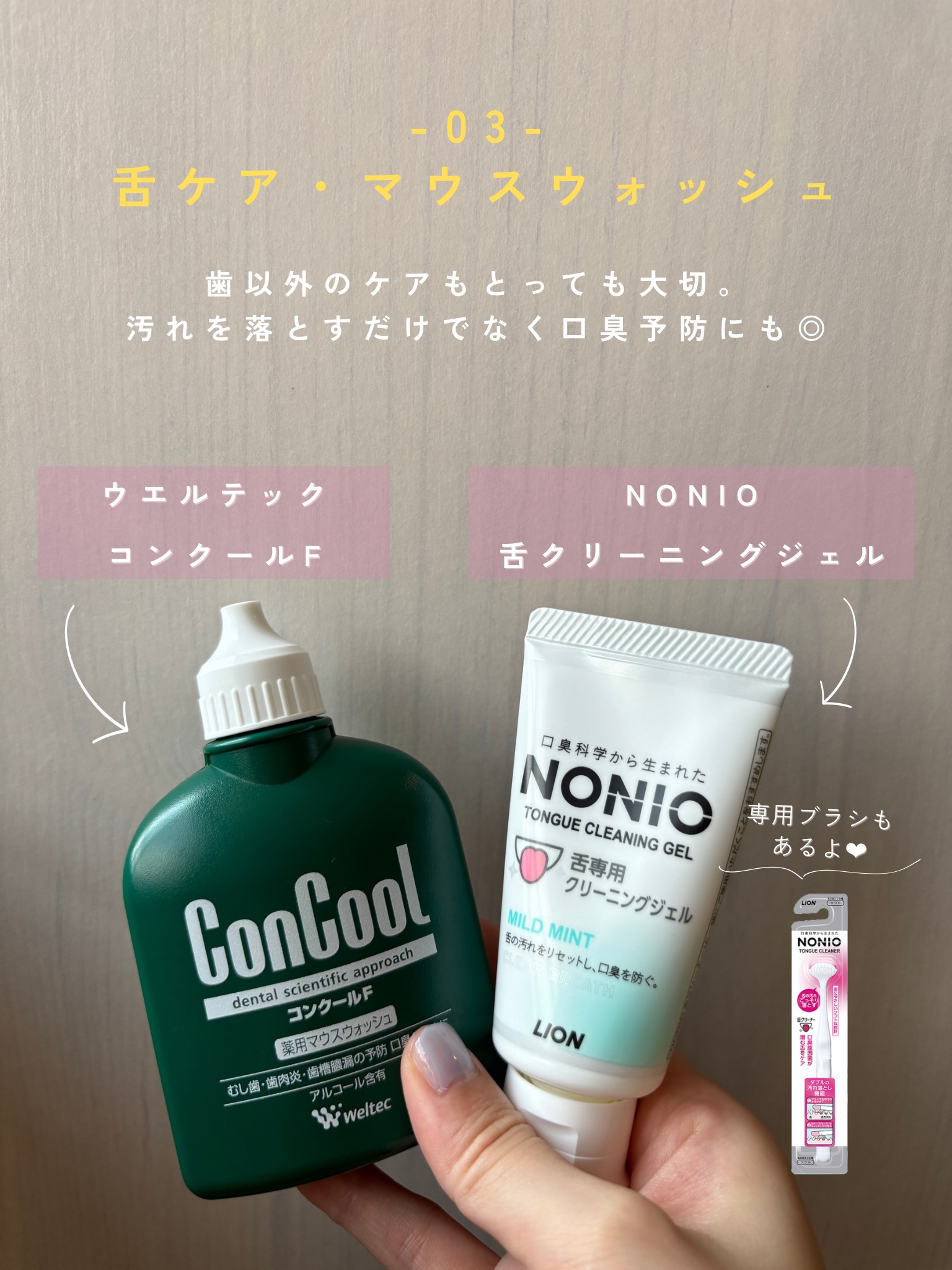 オーラルケアについて🤍/ずっと続けてる毎日のオーラルケアをまとめてみました🐶どれもコスパがいいから気軽に始められるよ♡特におすすめなのは、クリニカのフロス!色々なフロスを試してみたんだけどこれはとっても使いやすかった✨フロス初心者さんは是非つかってみて〜👀舌のケアはNONIOの舌専用クリーナー、クリーニングジェルで舌を傷つけないように優しくしっかりと汚れを落としてる!みんなのおすすめオーラルケアも教えてほしいな〜📝♡#オーラルケア#歯ブラシ#コンクール#クリニカ#オクチシリーズ#NONIO#キレイを目指す新習慣#ポーチの中身紹介動画