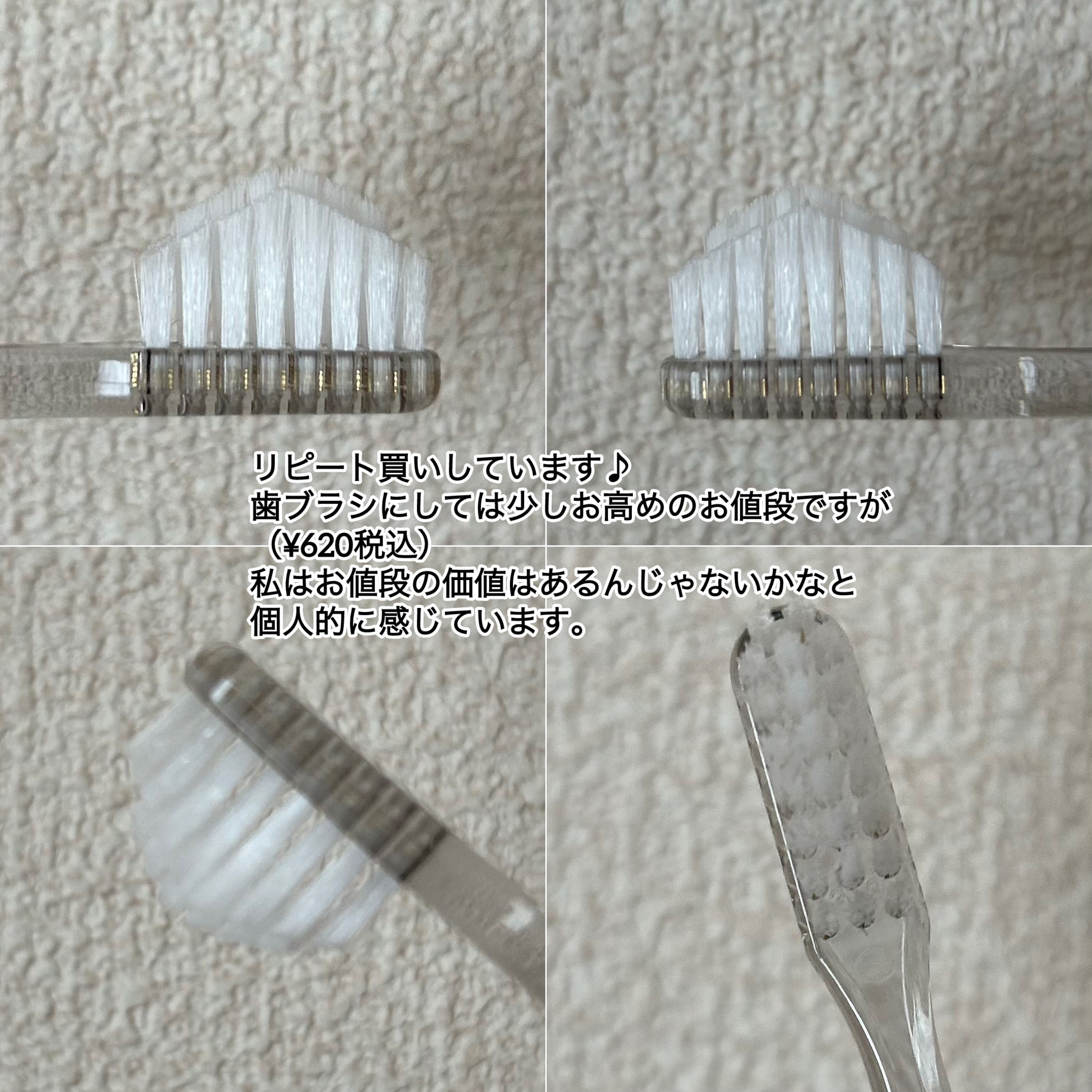 ブラシの中央が凸状に飛び出ていて、横から見ると山状になってます。ここが歯間にフィットする様。 ブラシが柔らかすぎて、洗い心地も普段使ってるものの方(タフト)が良くて私にはあまり合いませんでした。 歯間が気になる方は一回試してみてもいいかも💭