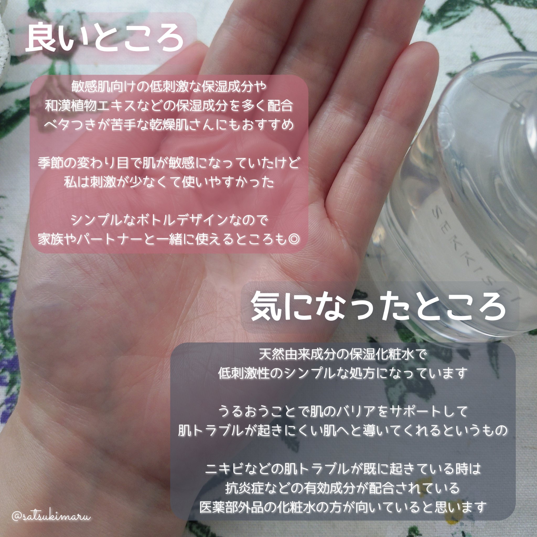 バシャバシャ系の化粧水ですが、一回でもさっぱりし過ぎなくて保湿もされている感じの化粧水でした。 乾燥が気になる方やインナードライ肌の方は重ね付けするとよりしっとりすると思います☺️✨ マスク荒れで赤みやニキビが出来ていたお肌でも刺激なく使えてとても助かりました✨ ボトルもシンプルでオシャレなのもスキンケアする時にテンション上がります♡