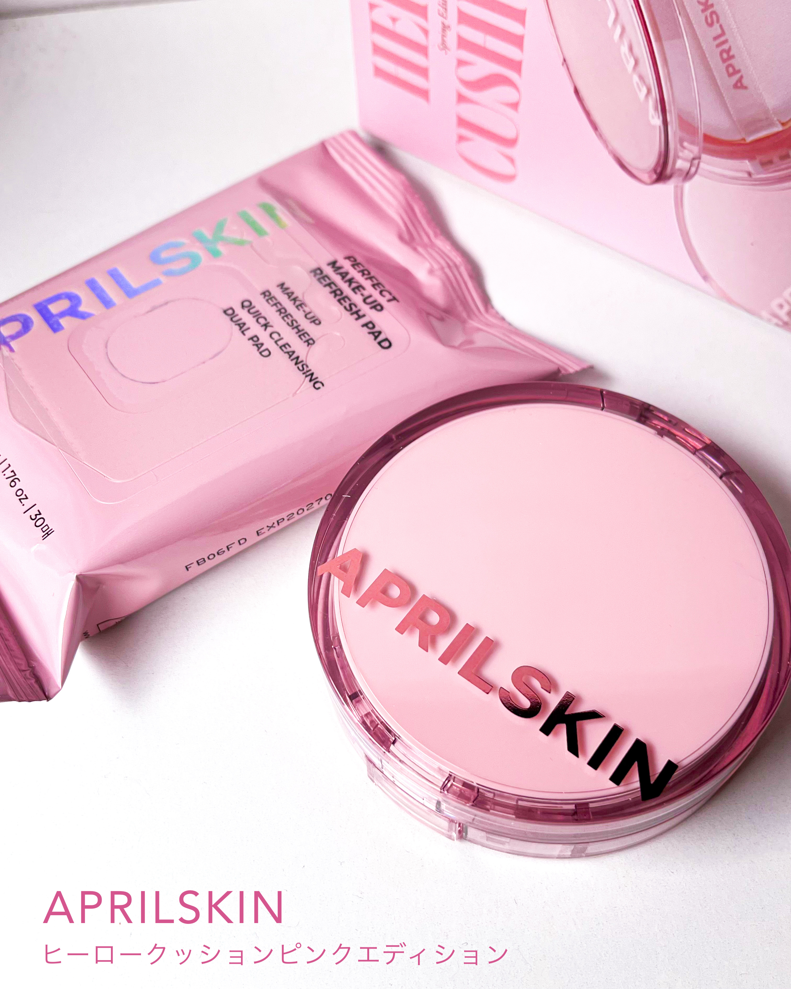 APRILSKIN様から人気のヒーロークッションのピンクエディションをいただきました。こちらは春限定のピンクカラーになったパッケージのヒーロークッションとリフィル、メイク直しシート付きの限定セットでQoo10で販売中です!元々APRILSKI...