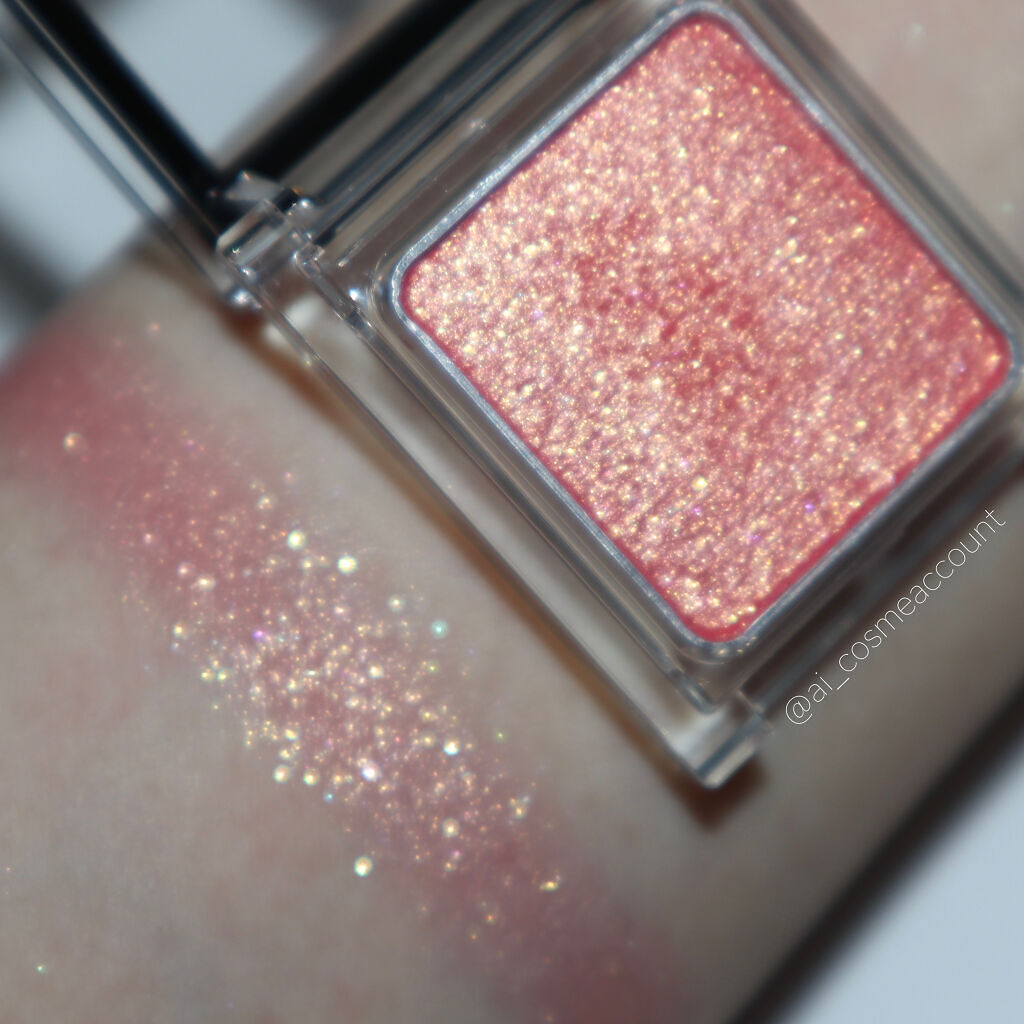夏にぴったりなフレッシュコーラルの大粒偏光グリッター『WEB限定色CS402.未来を覗く』/3月19日に82色同時発売された『KATE-ケイト』の単色アイシャドウ『ザアイカラー』は様々な色味や質感から自分好みのものを選べる。「無限に生まれる“欲”を満たす」がコンセプトのアイシャドウ。店舗販売されている26色+WEB限定色82色、煩悩の数と掛けているのか丁度108色展開です。単色アイシャドウですが、別売りの専用ケースを購入する事で、1億以上の組み合わせから好きな色・質感を4色選んで、欲を満たすたった自分だけのアイシャドウパレットが作れます。色が多くて迷う‼︎という方はKATEの公式サイトで自分好みの“色”や、アイシャドウ1色1色についている個性的な“欲名”から選んでパレットを作ることも可能です。動画バージョン↓https://lipscosme.com/posts/4125539コスパ★★☆単色で好きな色味だけが欲しい方には1色¥715円とプチプライスで手に取りやすい価格ですが、パレットにすると¥715×4=2860円+ケース990円=3850円になるので、プチプラではなくなってしまいますが、自分好みの色を選べるので、捨て色がなくなるという面は良いと思います。発色・質感★★★WEB限定質感のPS(プリズムクラッシュ)は、透け感のあるシアー発色と、宝石を砕いたような幻想的で美しい輝きの大粒偏光グリッターです。ツヤ感・ラメ感★★★WEB限定新色PS402.未来を覗く(ブロッサムプリズム)は、夏にぴったりな透け感フレッシュコーラルに、大粒の偏光イエロー×ピンク×オレンジが目元に程良い血色感とツヤ感を演出してくれるカラーです。使いやすさ★★★単色使いでももちろん可愛いんですが、どのアイシャドウとも相性がとても良いので、アイホール全体に仕込んだり、逆に色をのせた後の仕上げにまぶたの中心や目頭・涙袋などにトッピングしても綺麗です。入手しやすさ★☆☆3月19日に発売された新色82色は全てWEB限定色のため店舗販売がなく、テスターで色味や質感を見て購入する事が難しいので、この投稿で最大限色味や質感をお伝えできるように、色んな角度や光の強さで撮影してみました。ぜひ写真を拡大して、グリッターの色味や質感を見ていただけると嬉しいです。________________________________________________商品名:ザアイカラーブランド:KATE-ケイトメーカー:カネボウ化粧品原産国:日本アイテム:単色アイシャドウ質感:プリズムクラッシュ(偏光グリッター)内容量:1.7gカラー:PS402.未来を覗く(ブロッサムプリズム)WEB限定色価格:715円(税込)発売日:2022年3月19日発売#ラメ愛好会