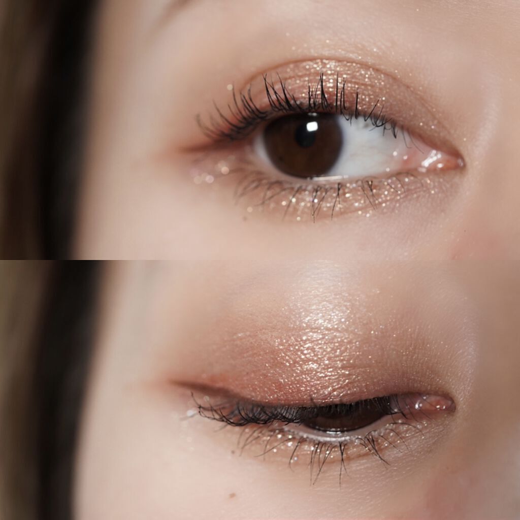 M109はベースにぴったりなカラー。自然な陰影をつくりだすスキントーン。 G303は透け感ラメがとっても可愛い✨ ゴールドラメがキラッキラに輝きます! PS404はほんのりブラウン系のカラーにキラキラのラメがたっぷり! 単体でも色味が出てくれます! M113はマットなオレンジレッドに細かなゴールドラメがチラチラと煌めく😍!! メイクではアイラインを引く前に目のキワにライン状に細くいれてます!