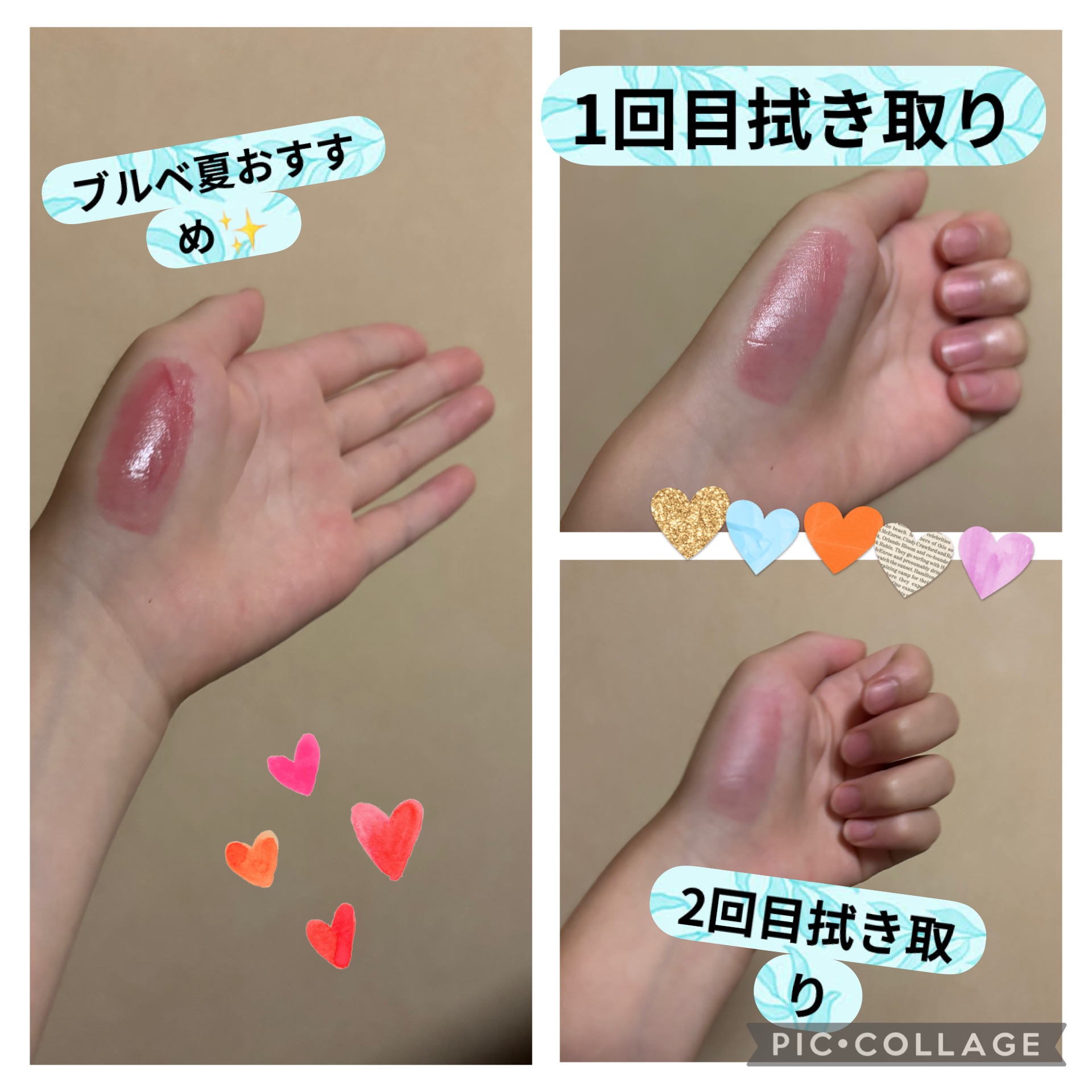 みずみずしく軽いテクスチャーで、乾燥しにくいです。 透明感やツヤ感が出て、ちゅるんとした唇に仕上がります💄 発色も良いです👌 ティントタイプなので、色持ちは他のツヤリップよりは良いと思います。 スクエア型のパッケージはとても可愛く、気分が上がります😍 06番は青みのあるピンク色で、ブルべさんにおすすめのカラーです。 カラーバリエーションが豊富でどれも可愛いので、他の色も試してみたいです✨