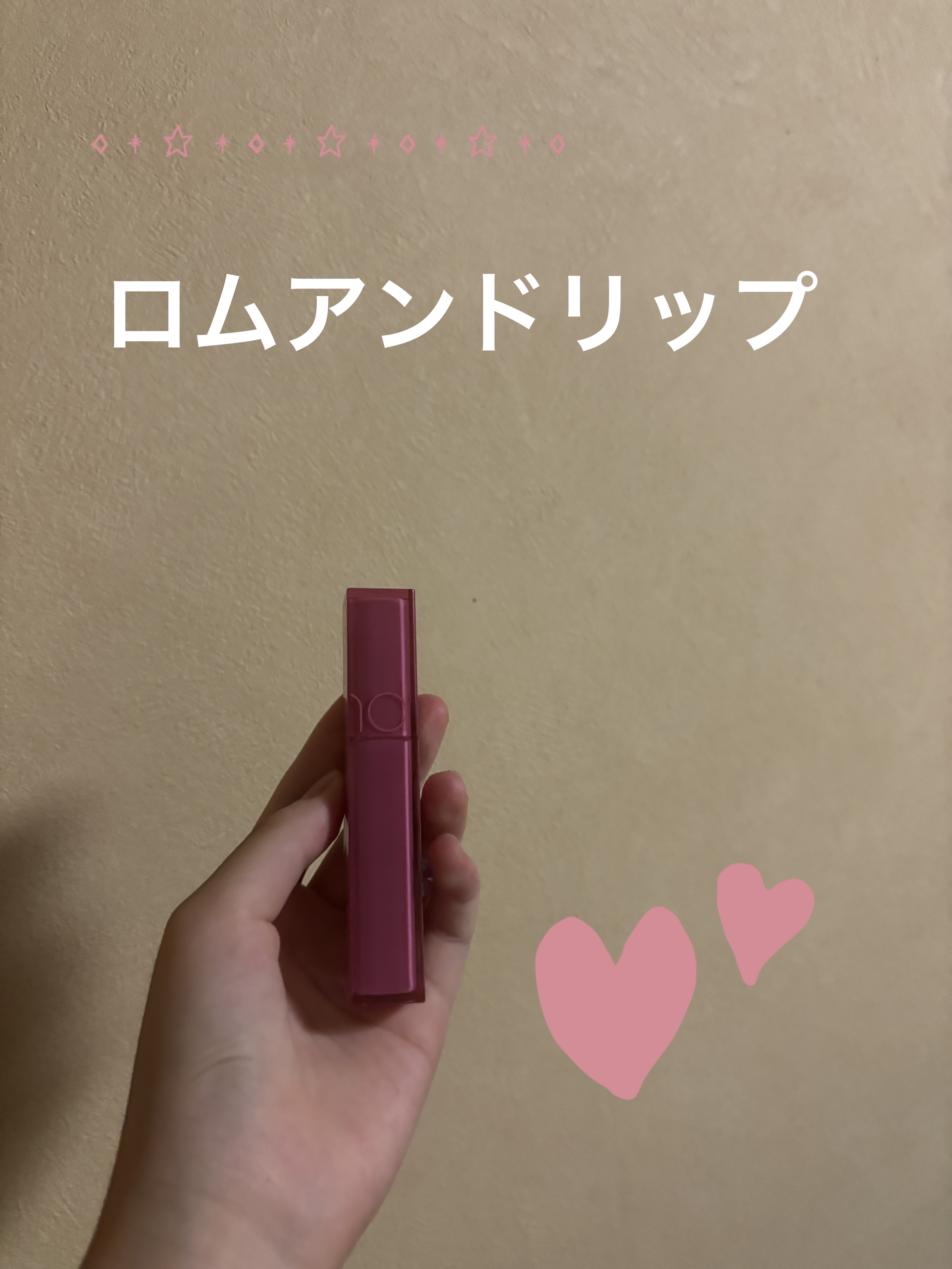 人気のrom&ndのリップです🫶 青みピンクでかわいいです◎ ツヤ感も綺麗です◎ 唇が薄いのが悩みですがこちらを使うとプルンとして◎ ただもうちょっとピンク感が強いと思いましたが重ね塗りするタイプなので結構濃く発色! どちらにしても好きな色味なので満足です🤍
