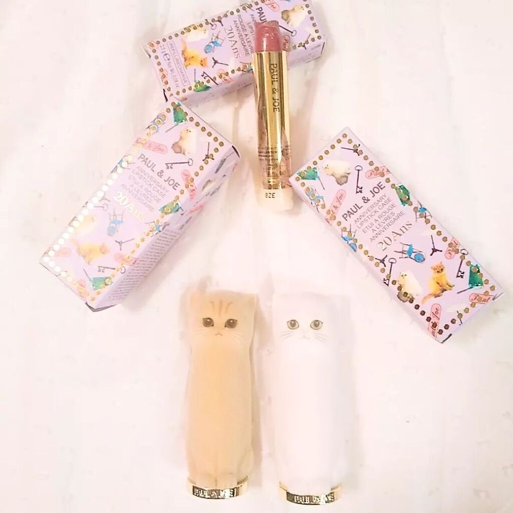 PAUL&JOE20周年記念限定(^。^)今回は2本限定のフロマージュニャンコのリップスティックケースが入っています透明感がかわいい猫🐱リップクリームは、クリームがとてもしっとりしていて、厚塗り感がなく、日常の通勤に適しています。色の選択が非...