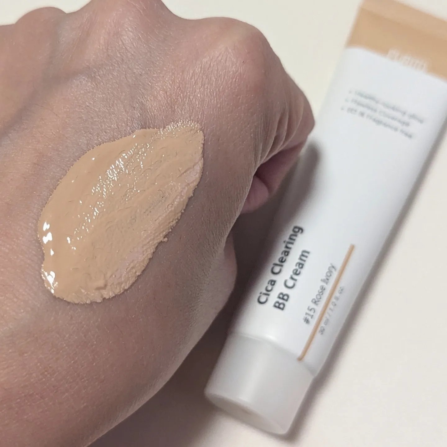#PRPURITOから商品提供をいただきました。CicaClearingBBCream#15RoseIvoryローズアイボリー柔らかいテクスチャー伸びが良く、擦らず塗れました。気になる部分には重ねづけするとカバー出来て艶のある仕上りに✨#BB...