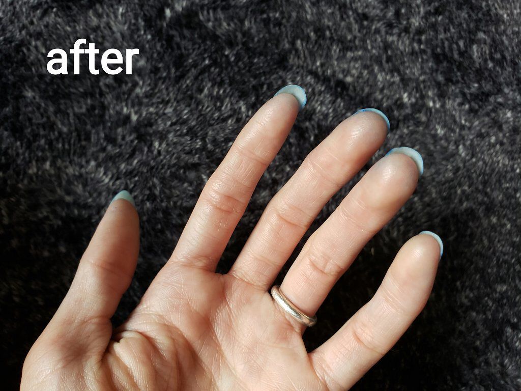 今回は、マニックパニックのショッキングブルーでヘアカラーをしてみたのでそのレビューをしていきたいと思います!!【※サムネ用に撮るのを忘れていて画像がないことをお許しください】初めてのマニパニなので、見守る程度にレビューを見て読んでいただけたら嬉しいです🙇🏼♀️あたしはいつも市販の箱のカラー剤やエンシェールズのカラーバターを使っているのですが、マニパニが気になっていたので興味本位で買って使ってみました。みなさんの参考になれば幸いです。準備するものは☆汚れてもいいタオル☆床にひく、いらない新聞紙や大きいビニール袋☆タオルをとめる洗濯ばさみ☆ヴァセリン☆手袋(なるべくピタッとするものがいいと思います)☆頭に巻くラップ〜レビュー〜染め順としては、あたしは毛先から徐々に上に上がっていき、てっぺんを染めてから前髪だったり、襟足、もみあげ、髪をかき分けて染まってない根本だったりを染めています💦要するに順番は自己流なんです…すいません🤫染めるまでは大丈夫なんです!!ここからがマニパニのデメリットであり注意するべきところで…染めてるときは手袋をつけてやっていたのですが、シャンプーをするときに手袋は外してやりました。(終わったあとにレビューなど見たら手袋をつけてやったほうがいいと書いてあって後悔😭)すると、手は真っ青になり、ドライヤーをしたあと余計に真っ青に。画像3枚目のようになりました。試行錯誤し、ハンドソープで洗ったりスポンジにハンドソープつけて洗ったり、キッチン洗剤で洗ったりしてやっと4枚目のような薄さになりました。爪先は相変わらず真っ青ですが😰荒れまくりです。ハンドクリームで補修しまくってます。そうならないために、マニパニの濃い色を使うみなさんにはできればドライヤーまで手袋をつけててほしいです💭また、シャンプーの際にお風呂についてしまった場合は、汚れた場所にキッチンペーパーを敷きその上からカビキラーをかけ、30分くらい置いて水で流すと取れます!その際は、カビキラーのニオイが充満しないように換気をしっかりしてくださいね💡このヘアマニキュア、雨が降ったときや汗をかいたときに服につくようなので気をつけないといけないですね(´・ω・`)染めるまではいいのですが、あとが大変なので次は買わないと思います。#おうち美容紹介#マニックパニック