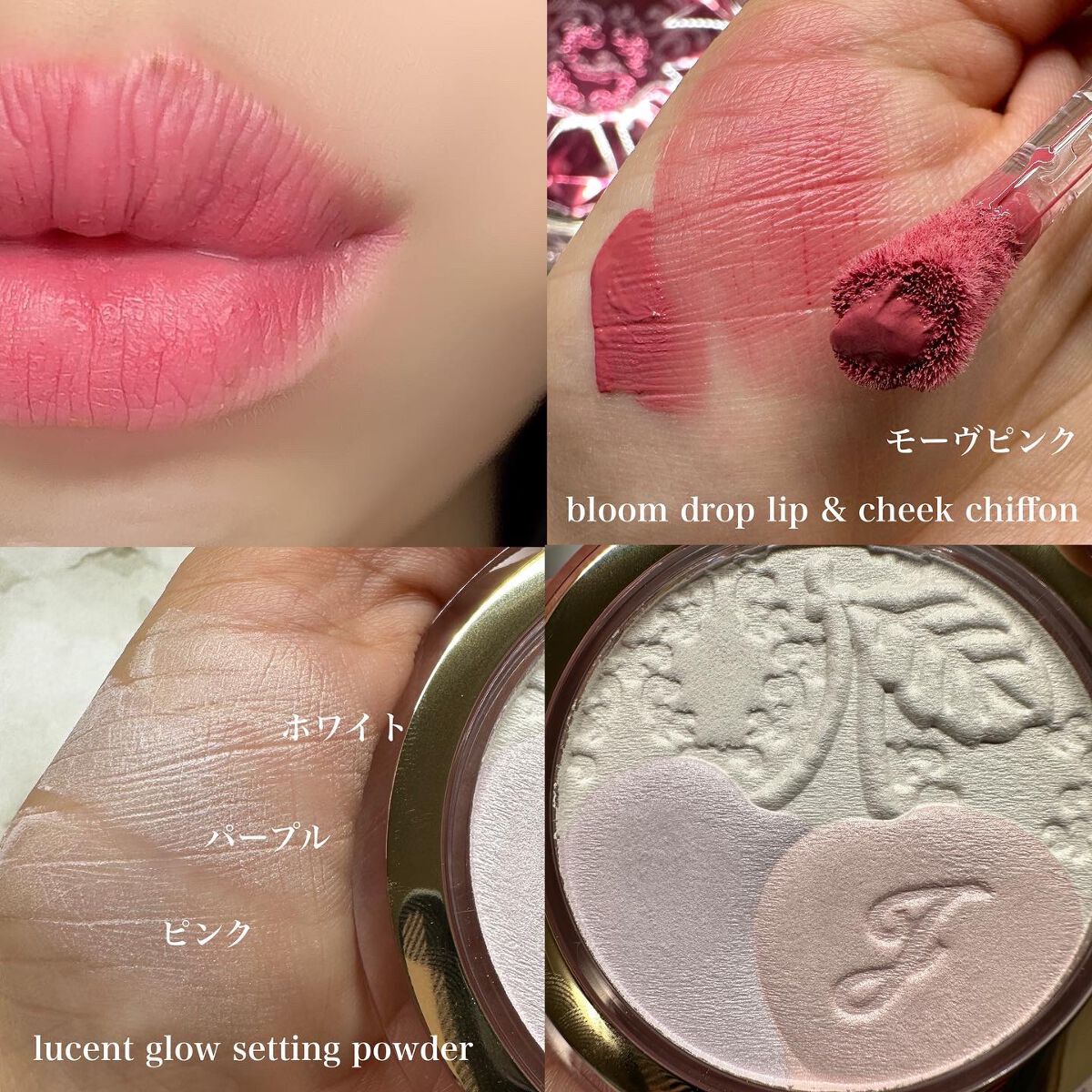 ☆ブルームクチュール アイズミッドナイトチェリーで2パターンメイク! 左側の方が赤みがある感じに仕上がって、右側はモーヴピンクっぽい感じになった💄 ☆ルーセントグロウ セッティングパウダーミッドナイトチェリー可愛くて使えない🥹🥹🥹 ☆ブルームドロップ リップ&チーク シフォンミッドナイトチェリーチークにはぼかして入れたら最適! ☆イルミネイティング セラムプライマーEX cherry aurora lavender <ミッドナイトチェリー>これぞ求めてた!パープルにパールが入ってる感じ!! ☆アイダイヤモンド グリマー06 midnight cherry <ミッドナイトチェリー>07 merry cherry <ミッドナイトチェリー> 今年のホリデーはジルがかなり話題だった気もするけど春コスメも可愛いっぽいしほんとにお金が🌵💸💸💸