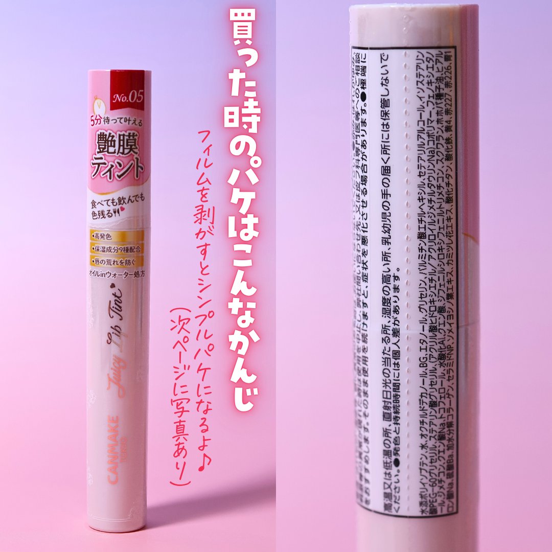 初めてこのシリーズのティントを購入してみましたが、発色の仕方と塗りやすさがとってもよくて気に入りました☺️💖 05はブルベの私は華やかな印象になってくれて、とってもよかった👌 簡単に塗っても可愛いってありがたい🥺💖 がっつり飲食すると多少落ちやすいですが個人的には気にならないのでたぶんまた買うと思います👌