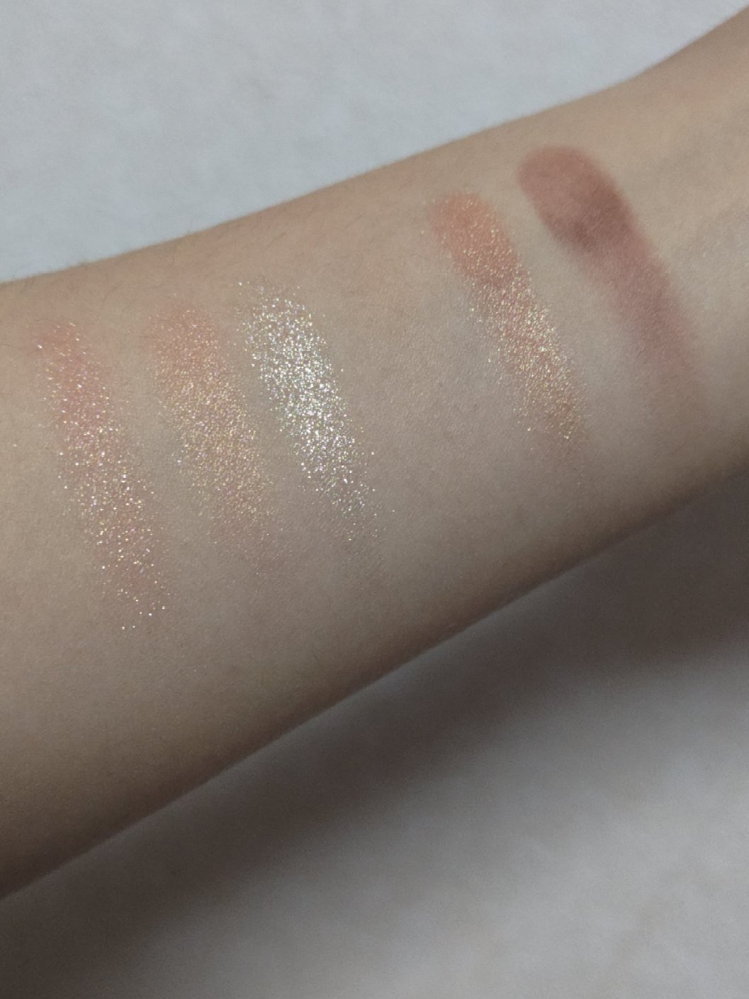 特に1番左の赤みオレンジがこれから春先に向かってオレンジ使いたいなーって時にブルベにも使えそうですぐ買った😌 1番左の赤みの強めなオレンジはラメもたっぷりで透け感があってピンク寄りに発色するから本当に使いやすい。 2番めのオレンジもコーラル系で明るくて、ブルベ夏/イエべ春の明るめ得意な方はベースからカラーアイテムとしてまで幅広く◎ 4番めは白っぽい明るめのマットなベージュ。肌に乗せると黄みが強すぎずくすみ飛ばしとしてもよかった🙆♀️ 5番めは明るめのブラウン系カラー。ラメも入っていてより明るさがプラスされてる。イエベ春さんはめちゃくちゃ使いやすいと思う◎ 6番め(1番右)は締め色ブラウン。アイライン代わりに使うにはニュートラル系なブラウンで割と誰でも使いやすい。