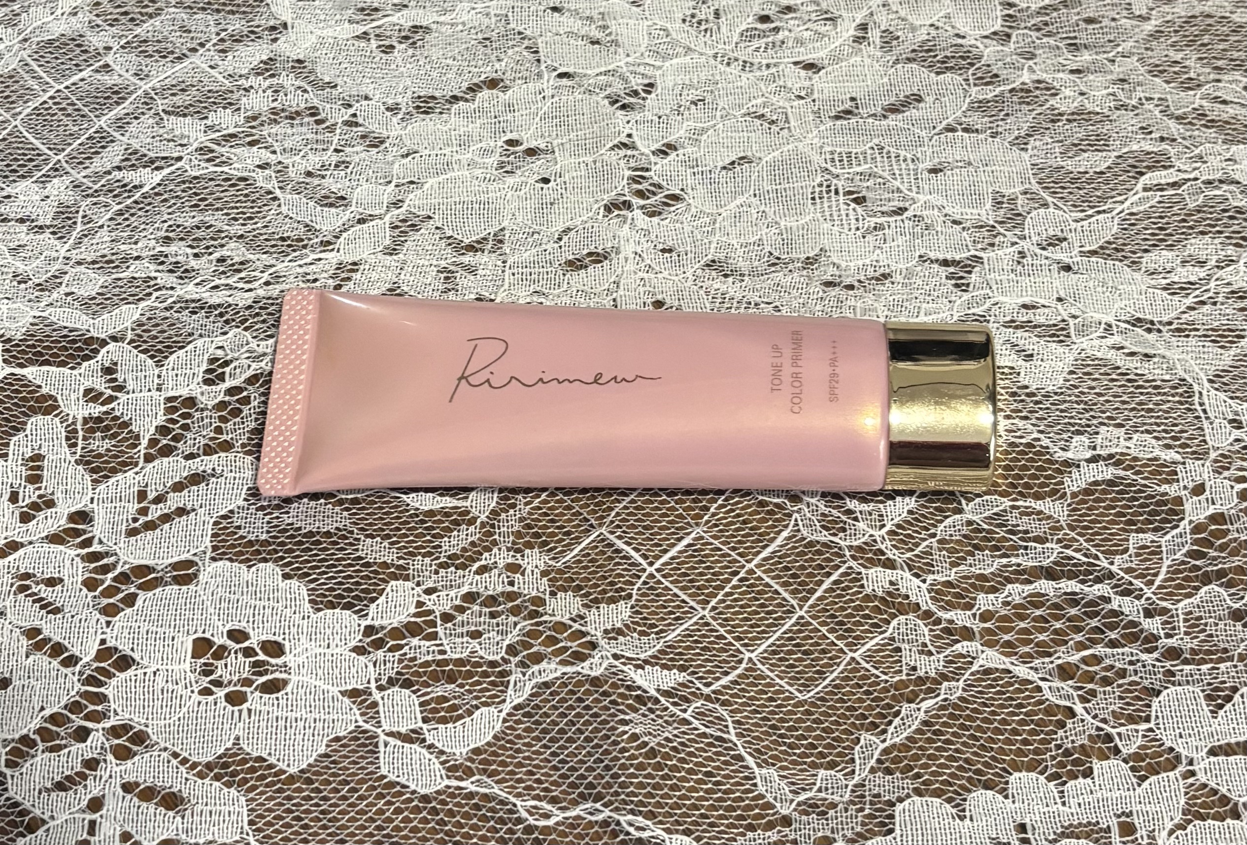 Ririmewのトーンアップカラープライマー。こちらは#パールピンクのカラー。仄かにパールを含んだカラーなので、肌に自然な艶感をもたらしてくれる。購入しやすい価格帯でありながら機能性が高く、尚且つ石鹸で落とせるところも嬉しい。 #ベースメイク#石鹸落ち#プライマー#化粧下地#鉄壁ベースのすすめ