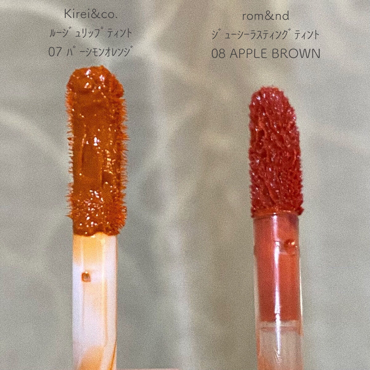˗ˏˋ カラーがそっくりなリップティント比較 ˊˎ˗手持ちリップの中に似ているリップがあったので比較をしていこうと思います💄ᝰ✍︎rom&ndジューシーラスティングティント08APPLEBROWNKirei&co.ルージュリップティント07パ...