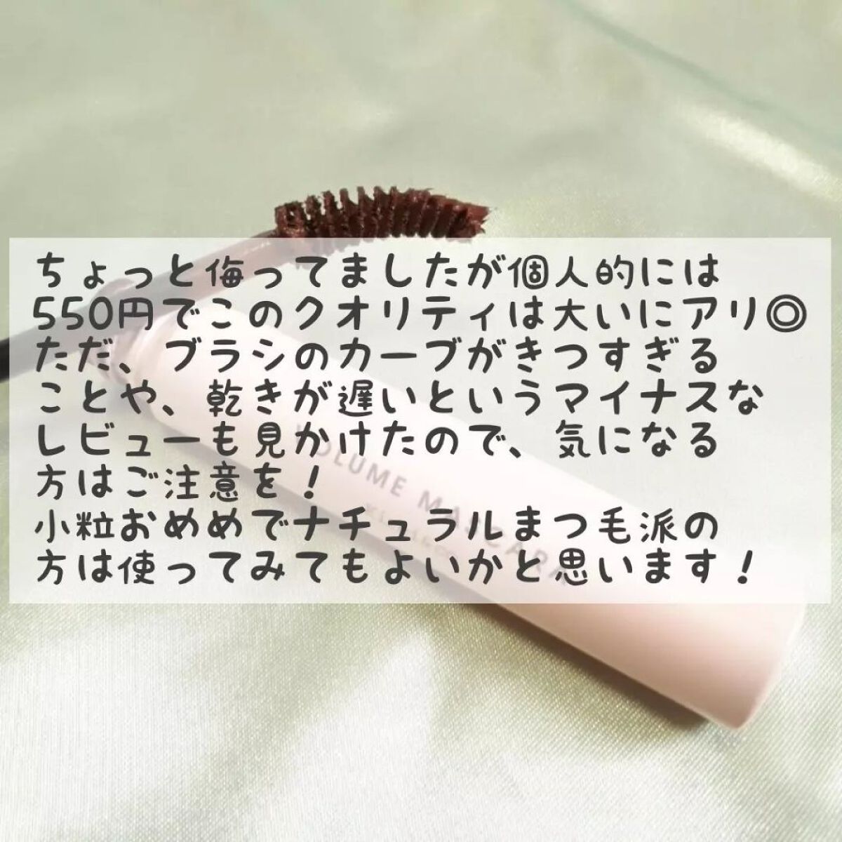 Kirei&co.ボリュームマスカラ02ブラウン¥550辛口レビューです☠️(個人的な感想ばかりですのでご承知ください)Instagramを見て全部550円で買えるコスメがあると知り急いでドラッグストアへ🚗💨本当にキレイアンドコーのコーナーは全品550円(税込)でした🥹👏2タイプあったけど私はボリュームタイプ購入🙆♀️💛翌日使ってみた感想としては、塗りやすさは特に問題なし。…が、乾くのがとても遅い😇💭マスカラ塗ったあといつもコーム通すんだけどまぁべったり(笑)こんなにべったりコームに付いたのはじめて😅💦モヤモヤしながらも懲りずにまたその翌日挑戦💪前日の経験を活かして時間置いてコーム通したけどまだ足りない…前日ほどコームには付かないけど他のマスカラに比べたら本当に乾きが遅いです。。。そしてボリュームタイプを買ったのに全然ボリューム出ない😮💨ただのブラウンマスカラじゃん…と思わず独り言🫢💦もちろん乾く時間やボリューム感は人それぞれ感じてることが違うのわかるけど少なくとも私には合わないコスメでした。#Kirei&co.#ボリュームマスカラ#購入コスメレポ#パケ大優勝アイテム#私のこだわりまつ毛
