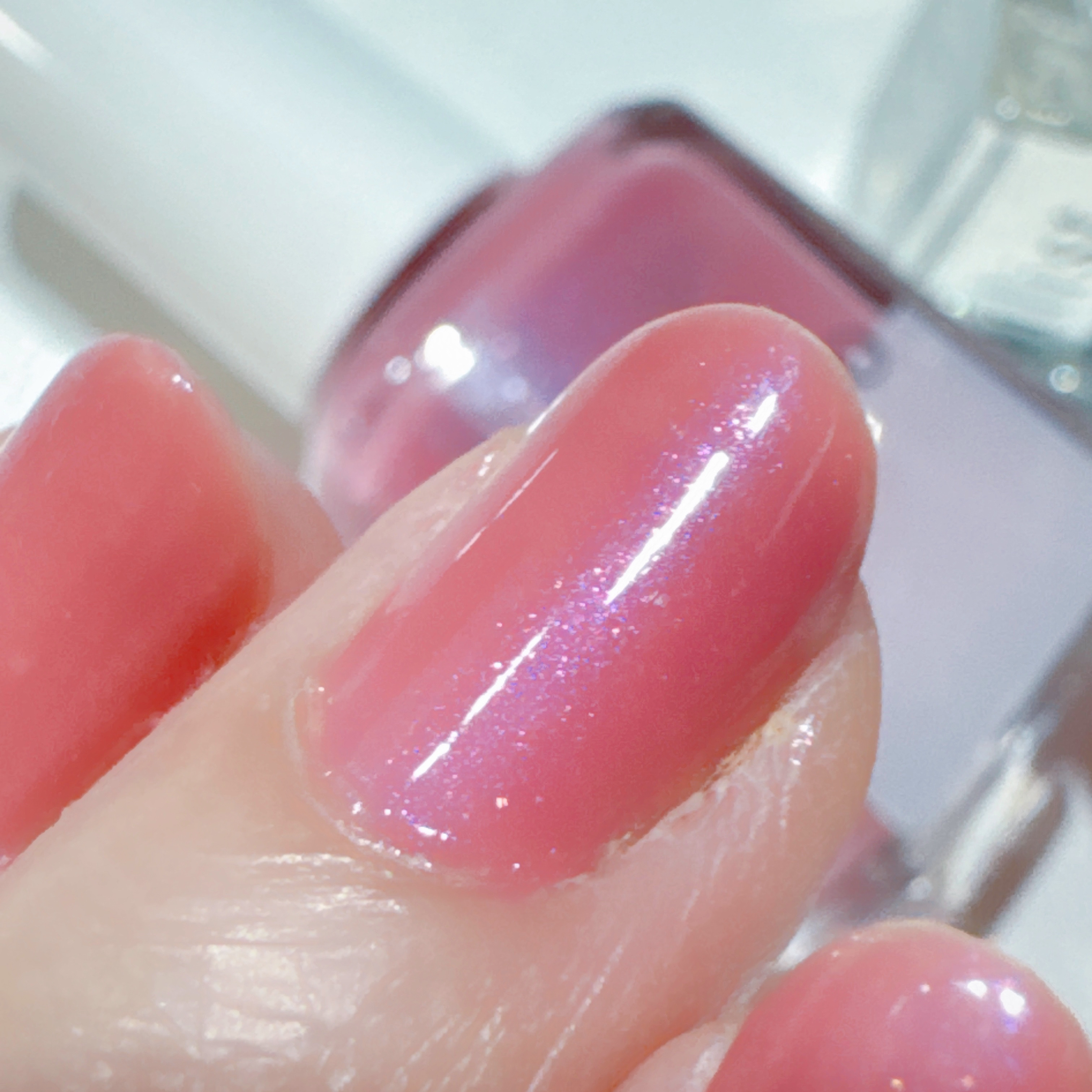 ツヤツヤピンクネイル🩷爪先だけちょこんとラメ✨実はこのネイル塗ってすぐオフしてしまいました😭近々長めの旅行に行く予定で楽しみにしながら塗ったのですが、長期の旅行なため途中でハゲたり落ちたりしちゃったら嫌だなあと考えて、今回はネイルなしで旅行行...
