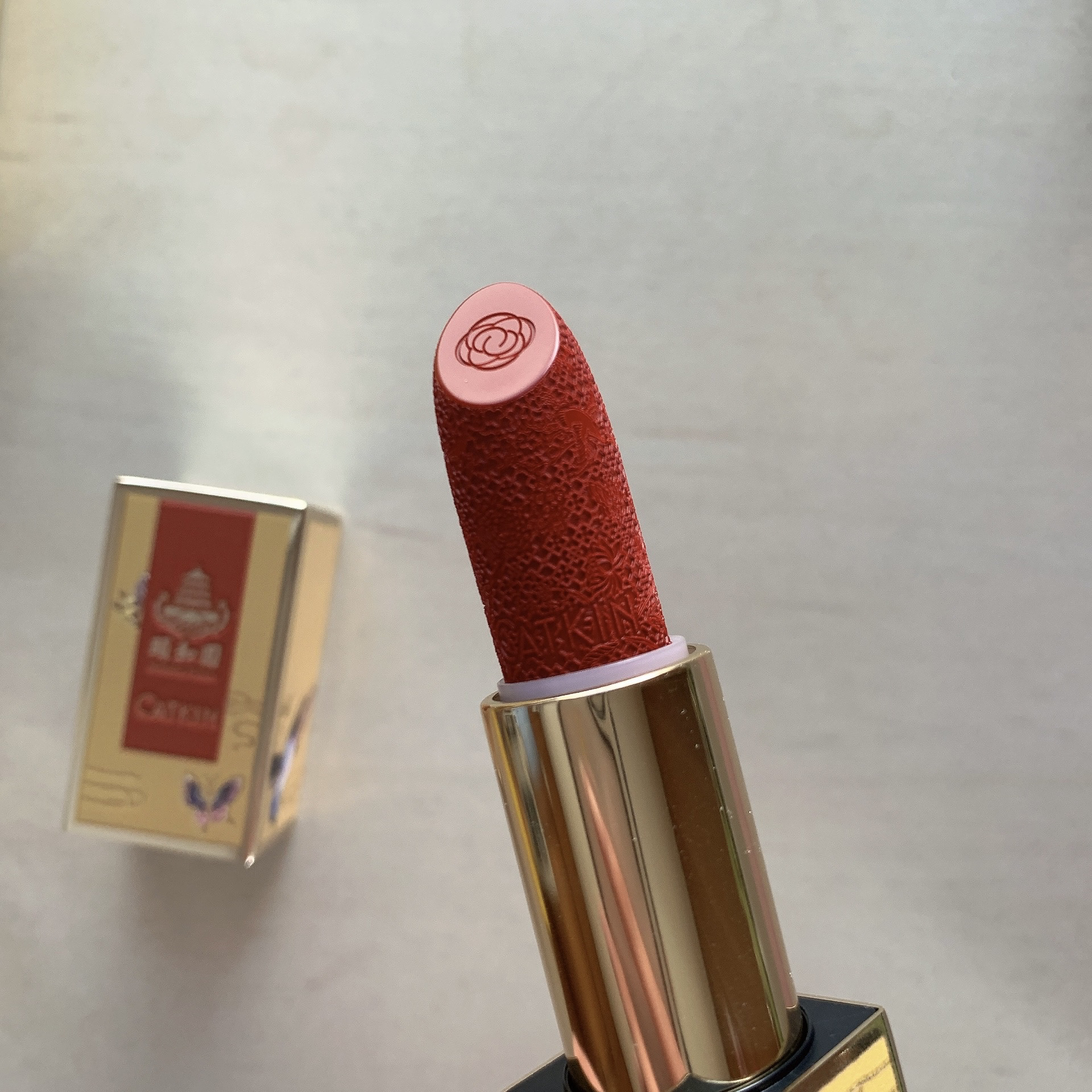 CATKIN頤和園コラボ彫刻口紅CO140¥2,300CATKINの彫刻リップ。パケ買いです。オレンジレッドのカラーにセミマットの質感が強い、とにかく強い。盛り耐性ある人向け。とにかく高発色で、目を引く。色持ちも◎彫刻から溢れる高級感。外身の...