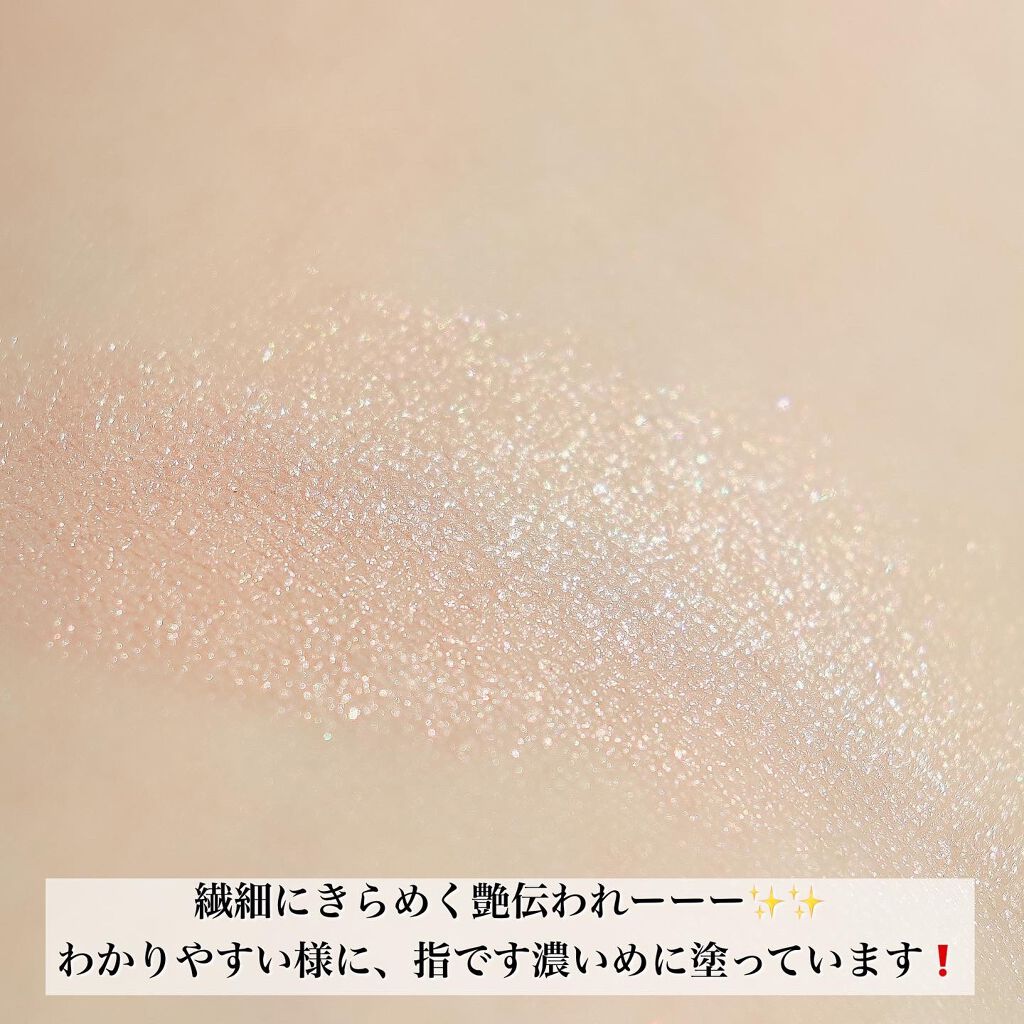 ピンクの偏光パール 繊細な偏光パールで常にキラキラしている訳ではなく角度によっては大人しい発色でした 下まぶたにのせると可愛い♪ 液は水っぽさがありました 乾くのが早くてのせすぎると乾いた時に軽いつっぱり感がある印象 のせすぎには注意です……