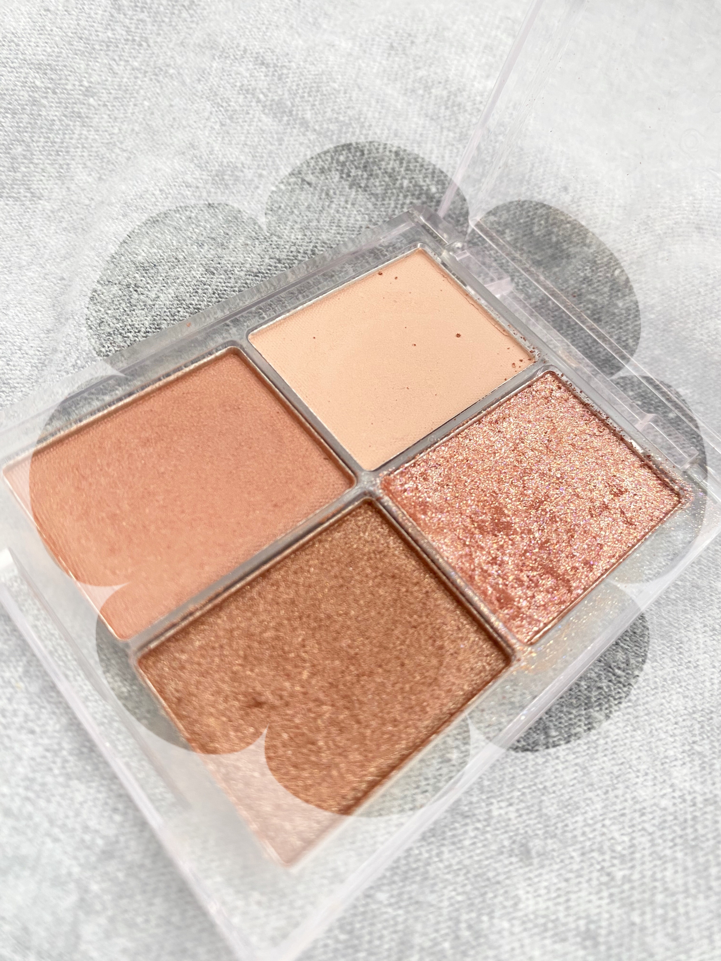 千円もしないで買えたけどこのレベルはすごすきた。 4色のアイシャドウパレットでクリームタイプのグリッターとマットとほのかに光沢感のあるブラウン。それぞれが良い味をだしてくれています! 発色もよきでした💁🏼❤️