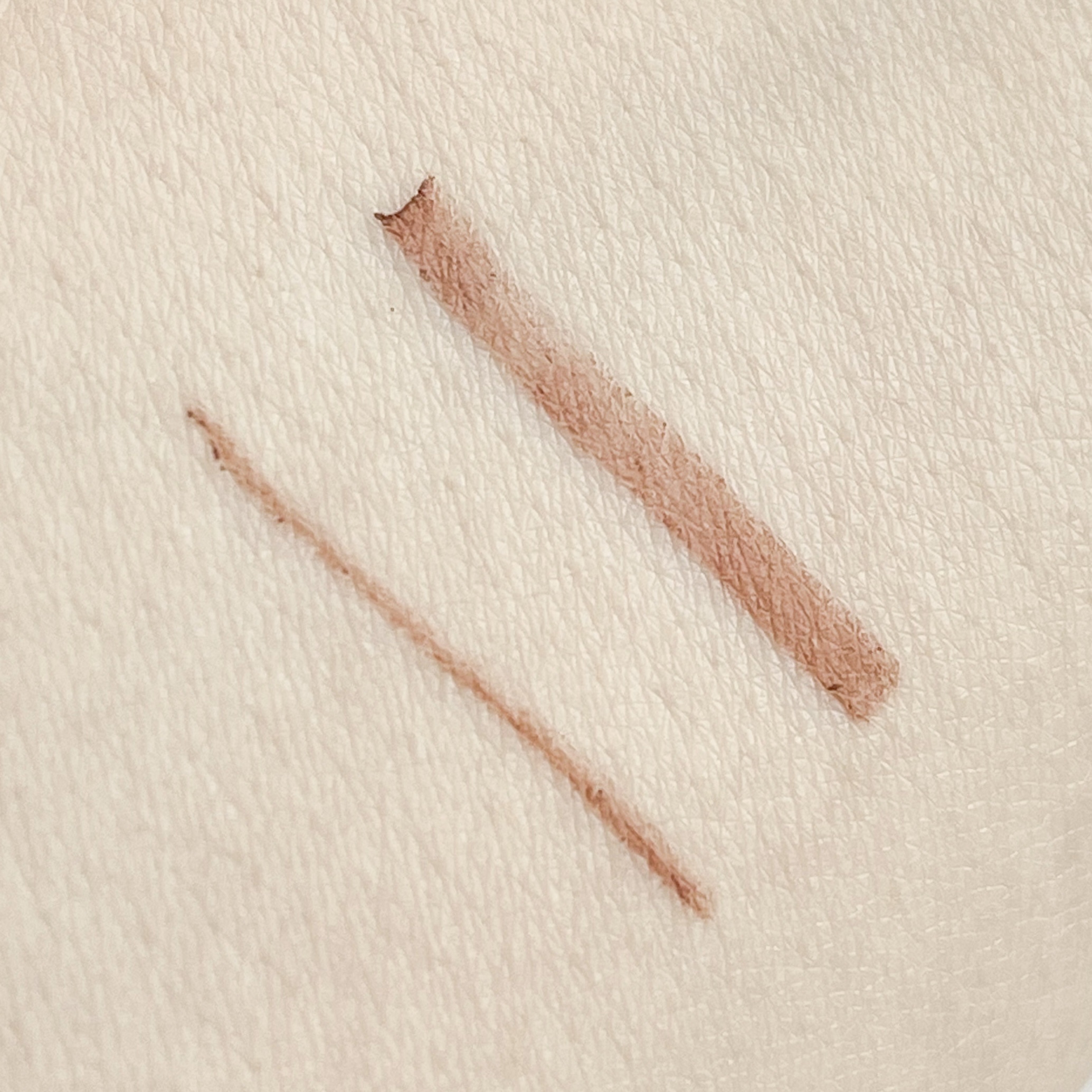 シナモンブラウンという肌馴染みが良い使いやすいカラー。 柔らかくクリーミーで、力を入れずともスルスル〜と描ける発色よいアイライナーです。 楕円形の芯なので、細いラインから太いラインまで自由自在にOK🙆♀️ 粘膜に描いてもピタッと密着するため、落ちにくいのが嬉しいですね。 水・皮脂・汗に強いスーパーウォータープルーフ仕様。 しっかりと描きやすい分、ポイントメイクのクレンジングかバームやオイルクレンジングが必要かな☝️