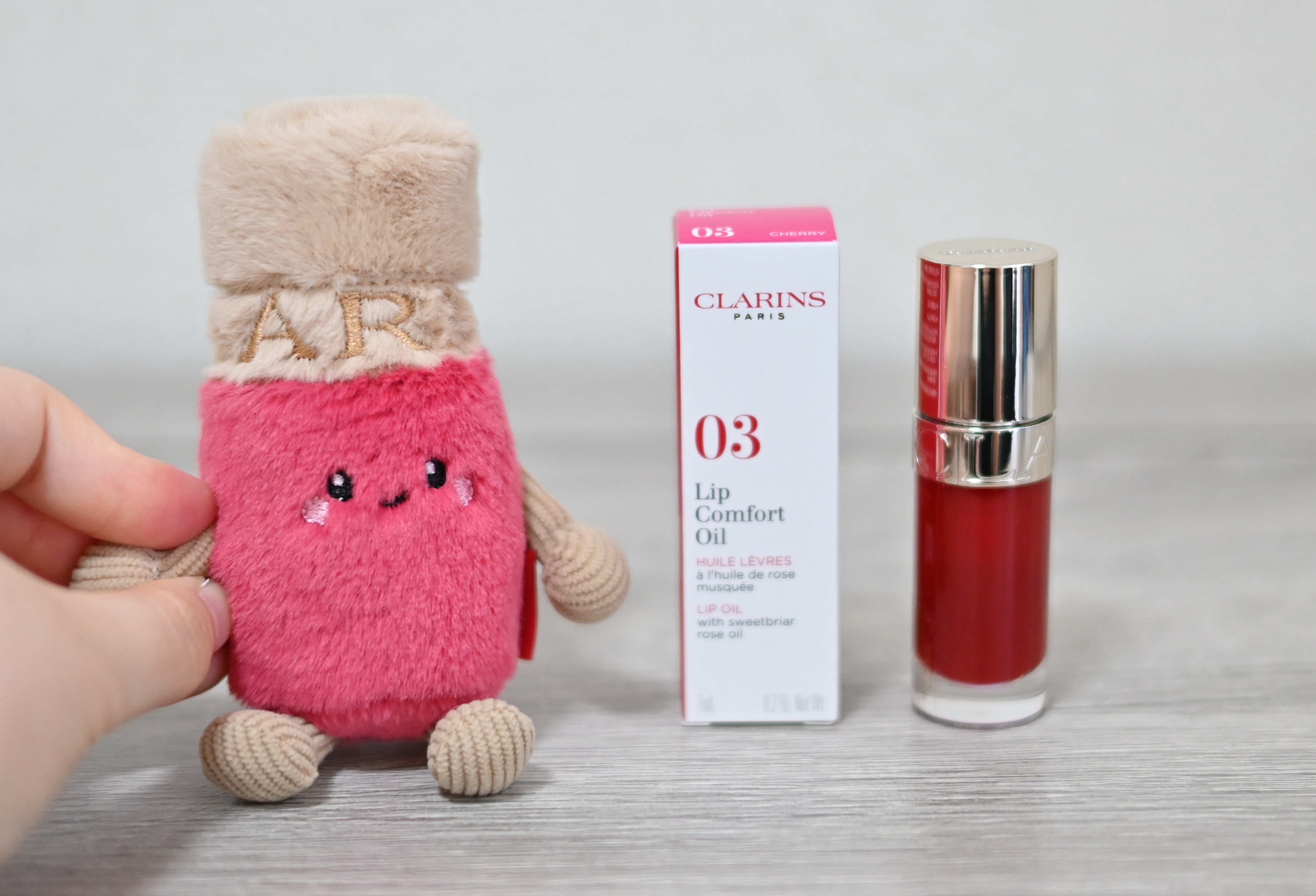 CLARINSリップコンフォートオイル03チェリーノベルティの妖精ちゃんのぬいぐるみが欲しくて購入しました、完全にぬいぐるみ狙いです😂リップがおまけぐらいの気持ちで購入したのですが、以外にも使用感と色味がとってもいい!オイルなのに全くベタベタしない上に不快感がないです、元の色に邪魔しないような発色でグロスにも使用できますし深みが出ます普通に当たり商品でした🫶#リップコンフォートオイル#デパコス#リップオイル#コスメ#新作コスメ#コスメレビュー#デパコスリップ#コスメ紹介#本音レビュー#正直レビュー#リップ#スキンケア#保湿#リップメイク#唇ケア#ブルベ冬