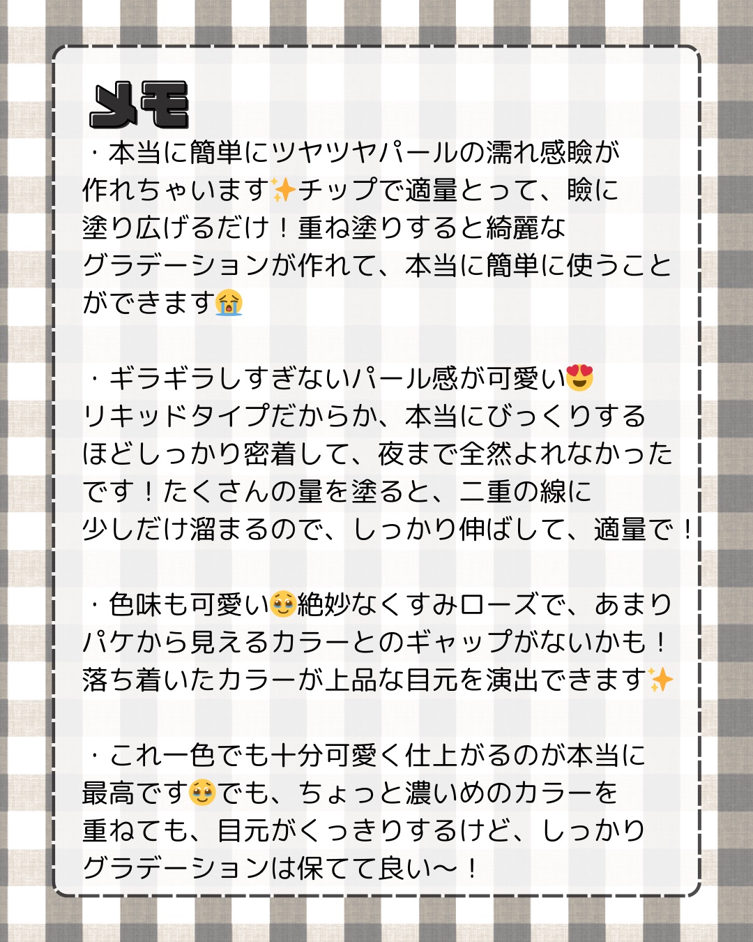| リキッドアイシャドウランキング第3位 | ヨレにくい軽いテクスチャーとなったリキッドアイシャドウです🖤なんとも綺麗なラメ感、そして発色もいい♡ | 詳細を見る | |