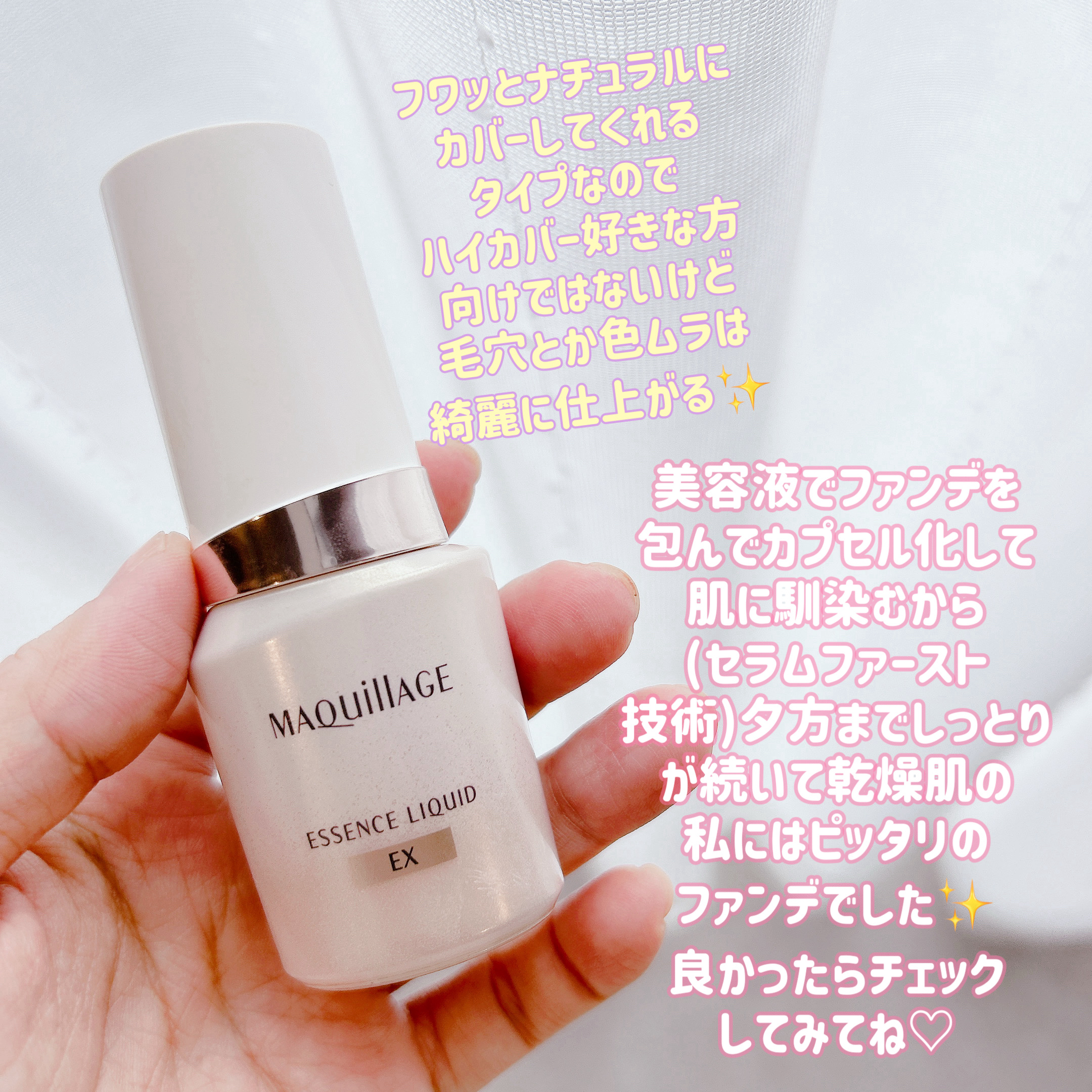 マキアージュの美容液ファンデです◎ 伸びがよくほんとに美容液のような塗り心地でめちゃめちゃ使いやすいです♡ 肌もいい感じにカバーしてくれて厚塗り感もなくよかったです♪ これからも使い続けたいアイテムです!