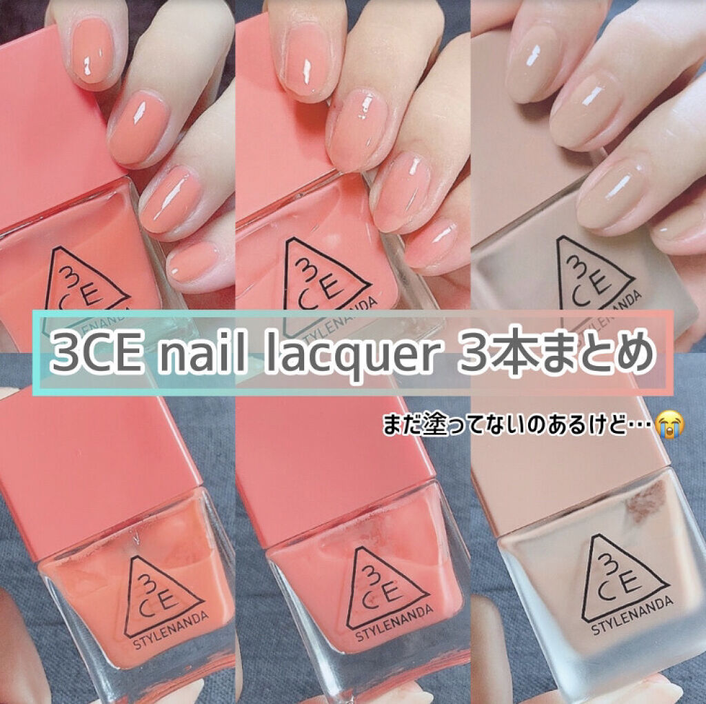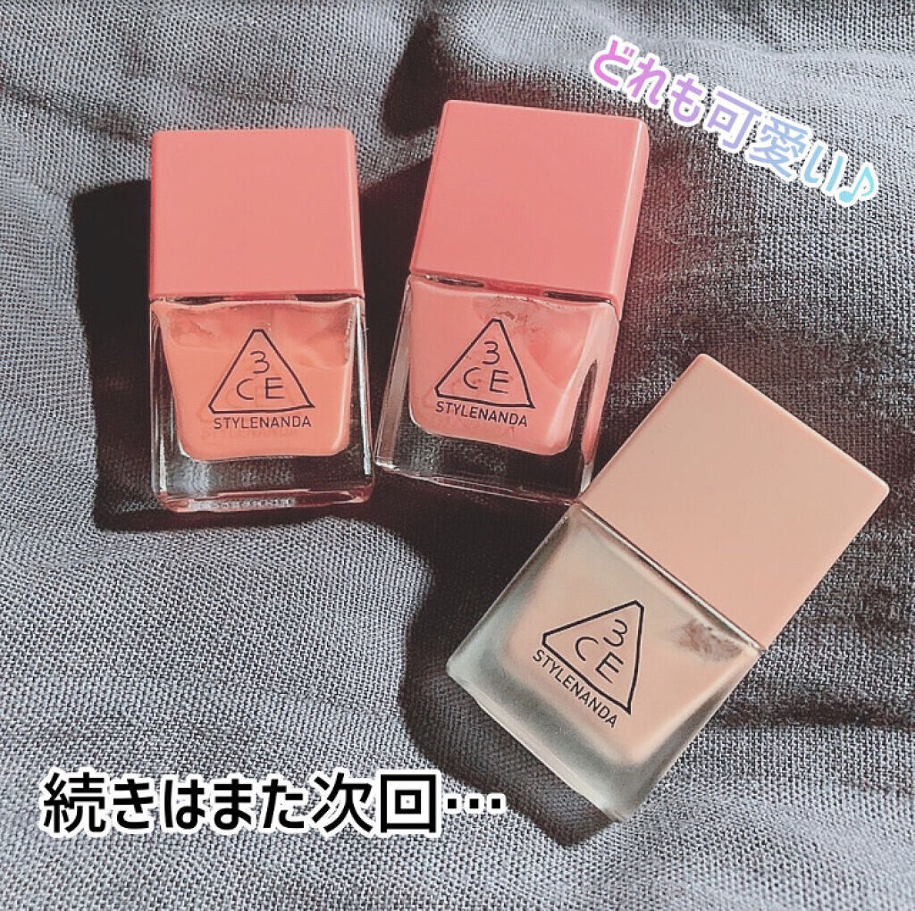 ★WAKEMAKEの nail gunが本当ね、可愛いの💕 今ある全部かな? 収集記録ですw 発色、塗りやすさ、 匂い←これわりと重要w このネイルをずっと使ってたら、 他のネイルを塗った時に 匂いがなかなかで、 ビックリしたのは、 ここだけの㊙w nail gunも匂いはあるけど ツーンとする匂いではなくて 私には塗りやすくて。 あと、ニュアンスネイルすきな方 ネイルカラーでの アレンジ好きな方には シアー感がとんでもなく 可愛いので、おすすめです✨ ★3CE NAIL LACQUER このシリーズは、1度塗りだと 全てシアーな発色だね😊 私の好きな発色です🥰 CR01 は、重ねると、 オレンジコーラルカラーで 春にもめちゃくちゃ可愛い🧡 PK24 はやさしい桃色💖 こちらもまた、春色で 桜のような色かな🌸 NU03 は、誰もがナチュラルに 塗れる、ヌーディーなカラー。 この色はオシャレ感もある🤎 全て今までレビューしてますが、 3CEのネイル、めちゃくちゃ 可愛い💕おすすめ✨