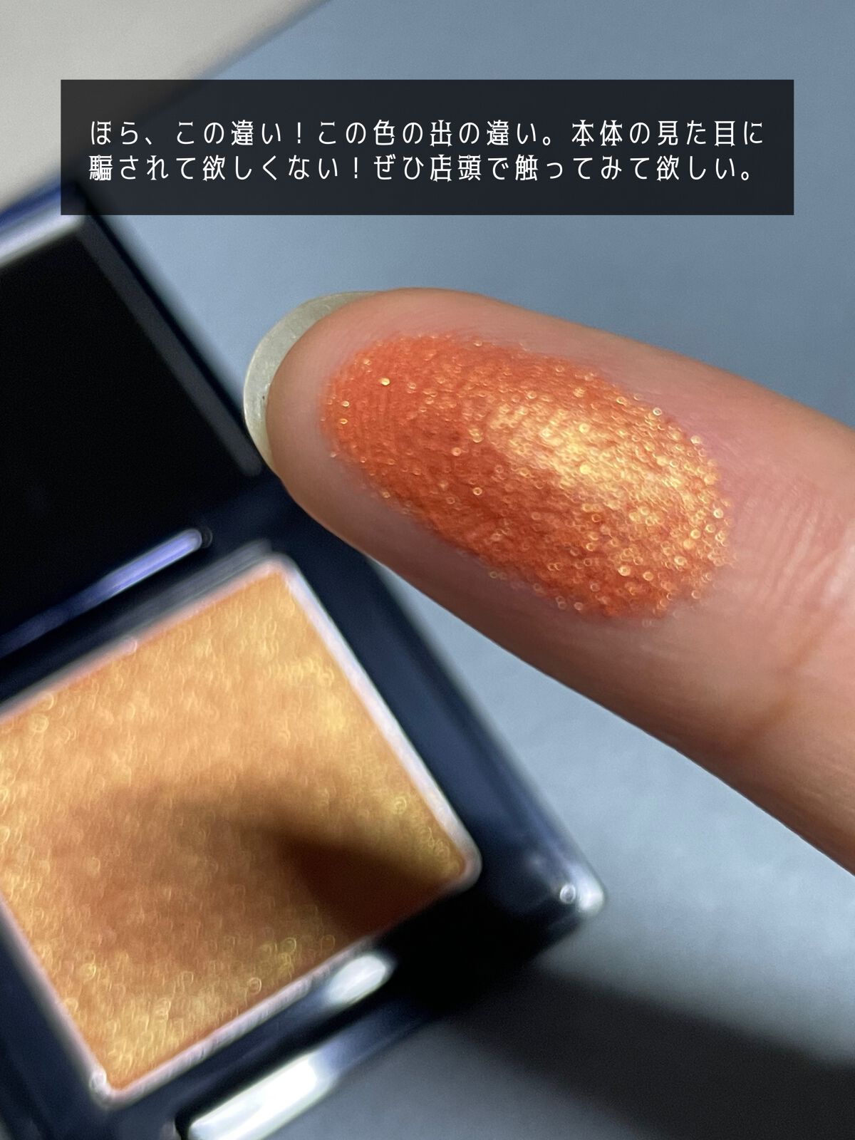 \ブルベも使いやすいオレンジ/コレは文句なしに可愛い!#エレガンスラズル#アイカラー21#ゴールデンデューン.••✼••┈┈┈┈••✼••┈┈┈┈••✼••.見た目の黄みに騙されないで欲しい!コレはブルベにもハマるオレンジ。やっぱりブルベさんはオレンジに抵抗感ありますよね。でも、コレ、見た目のゴールド感に騙されないで、一度スウォッチしてみて欲しい🥺絶対可愛いので🥺特に、明るめの色が得意な方や、鮮やかな色が得意な方にオススメします。.••✼••┈┈┈┈••✼••┈┈┈┈••✼••.パッと見はゴールド強いイエローオレンジ。なのに、スウォッチすると、赤みオレンジ〜!!!ラメやパールがゴールドなので、輝きはゴールドです。が、ベースはかなりの赤みオレンジなので、ブルベオレンジ。(イエベは言わずもがな)イエベ春、ブルベ冬にはバチッとハマると思う。春コスメとして推します。少し白っぽさも感じるので、明るい色が得意な方にもピッタリ。ピンク味も感じるので、全体的にはコーラルさもあり。この色のチークがあったら間違いなく買ってしまうと思ったビビッド族。.••✼••┈┈┈┈••✼••┈┈┈┈••✼••.ラズルのアイカラーって、どの色も生産は一度きり。一度に大量生産して、あとは売り切りなんですって。なので、どの色も『在庫がたくさんある限定色』という認識の、実質どれも限定色なんですよね。(新色が次々出るのは良いけど、ある意味厄介だと思うのはわたしだけ?)なので、気になった色は売り切れる前に早めにゲットですよ。また、¥2,310(税込)という価格ですが、中身は2g入ってるので、単色販売してるADDICTIONのザアイシャドウと比べると、だいたい半額の計算…。.••✼••┈┈┈┈••✼••┈┈┈┈••✼••.#ブルベのオレンジ#elegancerazzle#ラズルアイカラー#goldendune#オレンジメイク#春コスメ#春メイク#ゴールドラメ#コスメ好きさんと繋がりたい#コスメマニア#ラメ大調査#正直レポ