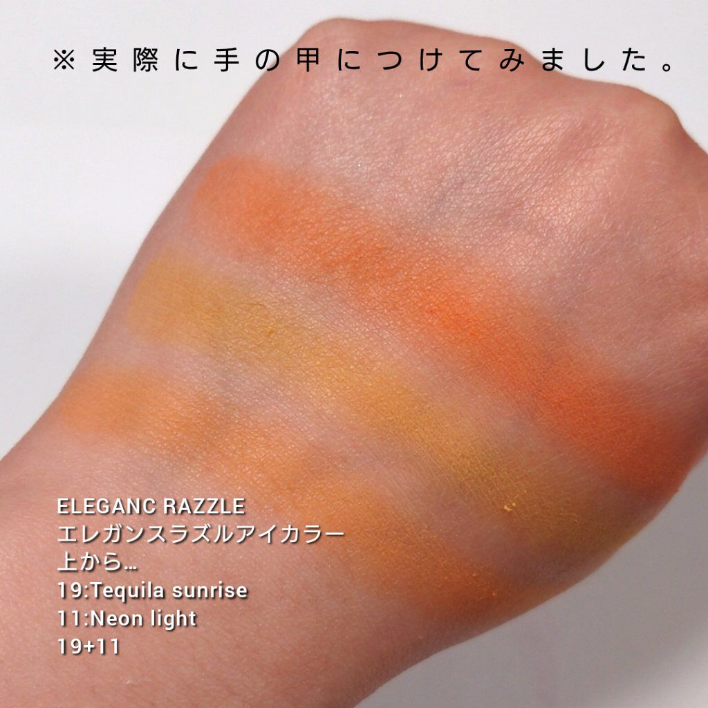 ✰エレガンスラズルアイカラー/エレガンスラズル✰19テキーラサンライズをゲット!明るいマットオレンジで、他ブランドではない色味だったので一目惚れでした。 べったりとつくアイシャドウではないので、色味も重ね付けで濃さを調節できるところがめっちゃ...