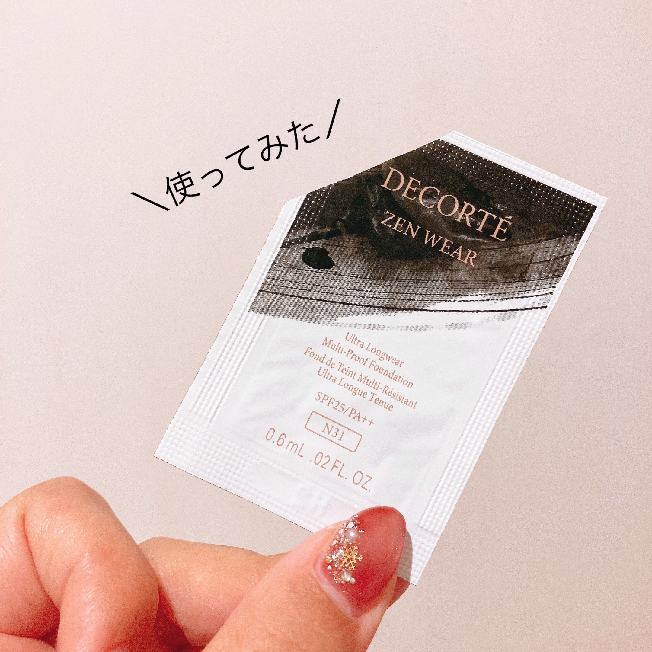 DECORTÉゼンウェアフルイドN31デコルテでお買い物した時にいただきました!先日グロウタイプの方試してたんだけど、そっちがマットの方かと思うくらいいいカバー力で私にはこっちはちょっとマットすぎたかな〜もう少しツヤ感ある方が好みかも!カバー力もあるし、崩れにくかったし、乾燥も気にならなかったので、マットな仕上がりが好きな人にはおすすめです!それにしてもファンでのサンプルって一包で3〜4回はメイクできちゃうからすごいよね。サンプルが全然減りません😂
