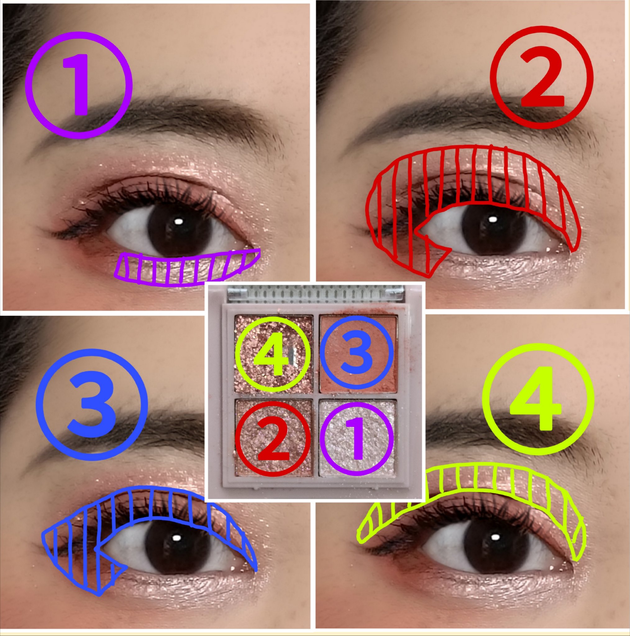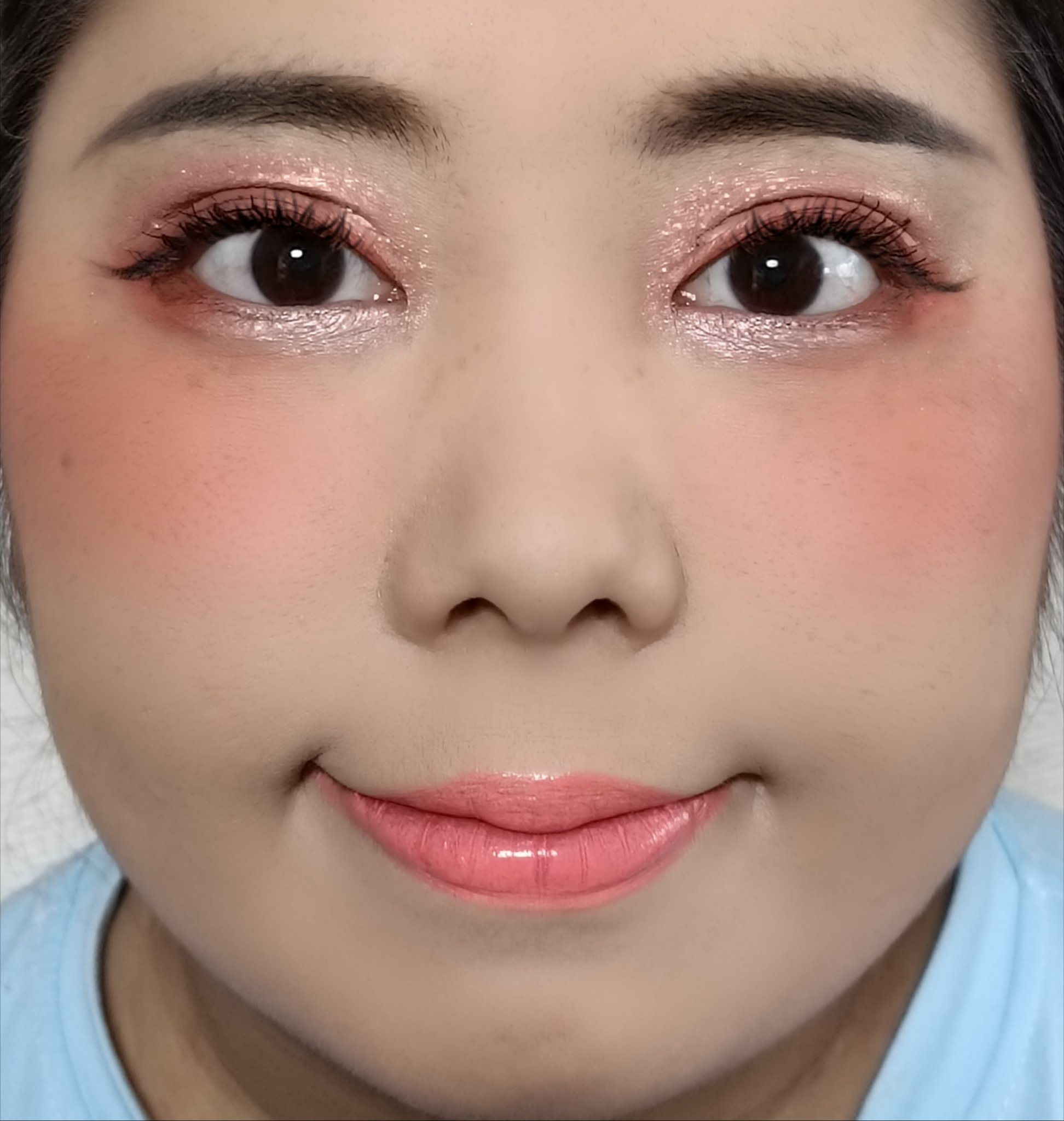 無印良品 UVベースコントロールカラー SPF 50+・PA+++ 旧 ピンク 上下左右によく振ってから顔全体に塗布する。 too cool for school フロッタージュペンシル #9 シアヌード アイシャドウのホワイトグリッターを塗布した涙袋の上に重ねる。 BOURJOIS カラー ブースト #04 ピーチ オン ザ ビーチ 唇全体にたっぷり塗布する。