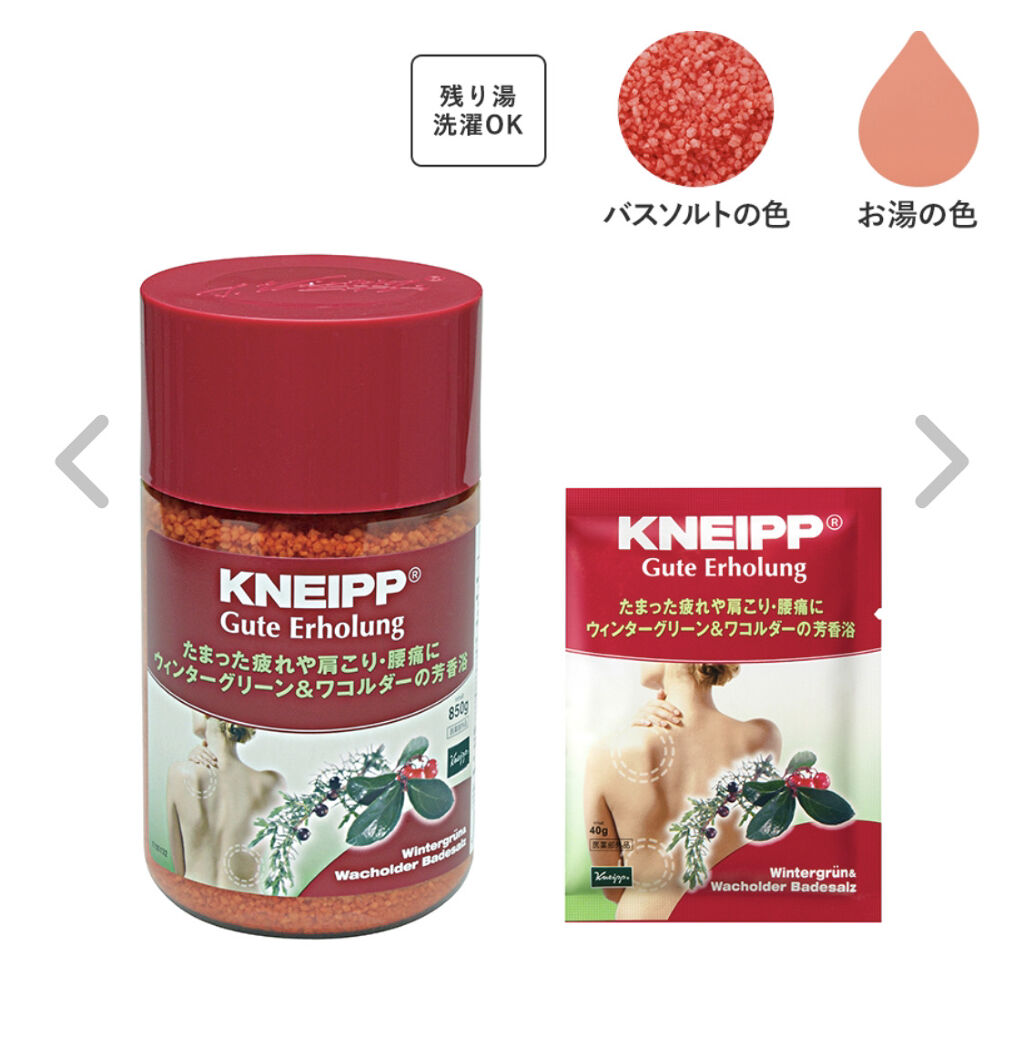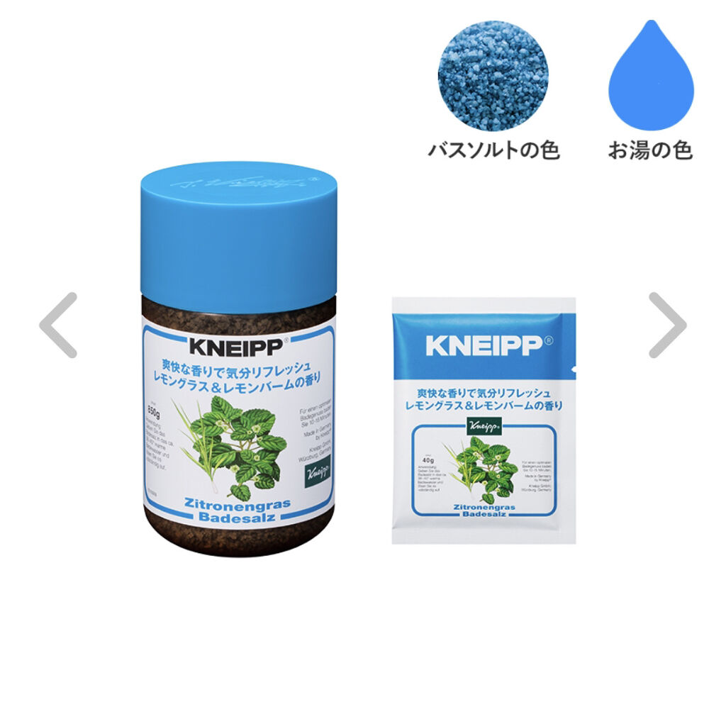 肌にやさしく、最高に癒される香り♡ドイツ生まれ。バスソルトの王様!こだわりの岩塩と天然オイルで作られてるので贅沢なリラックスタイムが味わえる。もう5年以上使ってるけどこの香りと色と保湿力、ちょっとお高いけど一度味わったら手放せません✨✼••┈┈••✼••┈┈••✼••┈┈••✼••┈┈••✼【商品】クナイプ バスソルト ボトルタイプ850g【コスパ】1800円〜2800円ほど※わたしは2000円以下の時にだけ買ってる1回あたり40g(キャップ内側一杯)推奨です。うちは家族が少ないので2日に1回湯船を入れ替えた時入れてて、だいたい1日50円の計算です♪(ひとボトルで42日間もつ)それでもちょっと高いけど…それだけの価値がある♡【香り】①サンダルウッド②ラベンダー③レモングラス&レモンバーム④ウィンターグリーン&ワコルダー※20種類以上?あるみたいだけど、わたしが全種類ためして個人的に紹介したいのはこの4種類✨【クナイプのこだわり】2億5000万年前の古代海水を精製した岩塩と、天然ハーブの精油(エッセンシャルオイル)から作られた、ドイツシェアNo.1のバスソルト。・植物由来成分を使用・防腐剤(パラベン)不使用・パラフィン、シリコン、鉱物油不使用・製品の動物実験をしない・肌への適応性に厳しい自社基準を設けている【私の感想!】①サンダルウッドの香り>リラックス効果の高い2種類のハーブ配合ムスクっぽい?お洒落な香りだけどまろやか。深呼吸したくなるほど落ち着く、癒しの香りです♡②ラベンダーの香り>心身をリラックスさせ、ストレスを和らげる。そのへんの芳香剤と全然違う!本物の天然精油のラベンダーってこんな香りなのか…❗️と衝撃でした。甘ったるくない!色も紫じゃない(笑)!ちょっとフルーツみたいな酸っぱいような?爽やかな香りで浄化されます♡③レモングラス&レモンバームの香り>レモングラスの精油とレモンバーム由来成分を配合。レモンなのに鮮やかなブルーが爽快感を増します♡リゾートに来たような解放感。④ウィンターグリーン&ワコルダーの香り>鎮痛効果に優れた2つのメディカルハーブを配合。肩こり、疲れなどに。一言で言うと湿布の香り!でもその嫌な感じだけ取り去った感じ(笑)じわぁっと疲れに効いてるな〜〜って感じがします。肩まで全身浸かってたい♡【よさを実感したストーリー】もう何年もクナイプを使っていて、ある時夫婦で1週間ほど外泊することに。帰宅したら二人とも手足の先がガサついてしまいました😭原因は何だろう、とボディソープや入浴ミルクなどを検証したところ、クナイプが無かったのが原因だと判明!香りが好きで使ってたけど、肌にもよかったとは✨クナイプのHP調べたけど特に保湿に力を入れてるわけでは無さそうで…。おそらく厳しい基準をクリアした肌適正の原料だけを使っているからだと思われます。✼••┈┈••✼••┈┈••✼••┈┈••✼••┈┈••✼ビビットなお湯色とハッとするような透き通る香りで最っ高に気分転換できます!!(色は濃いけど透明感あります。わたしは入浴ミルクも同時に入れて体が透けないようにして使ってます)週一で休日や、連勤のなか日に。プチ贅沢なリフレッシュにおすすめです♡1回分一袋160円のお試し用も売ってるみたいなので、気になった方はぜひ!#入浴剤#癒し#疲れ#リゾート気分#バスソルト#リフレッシュ