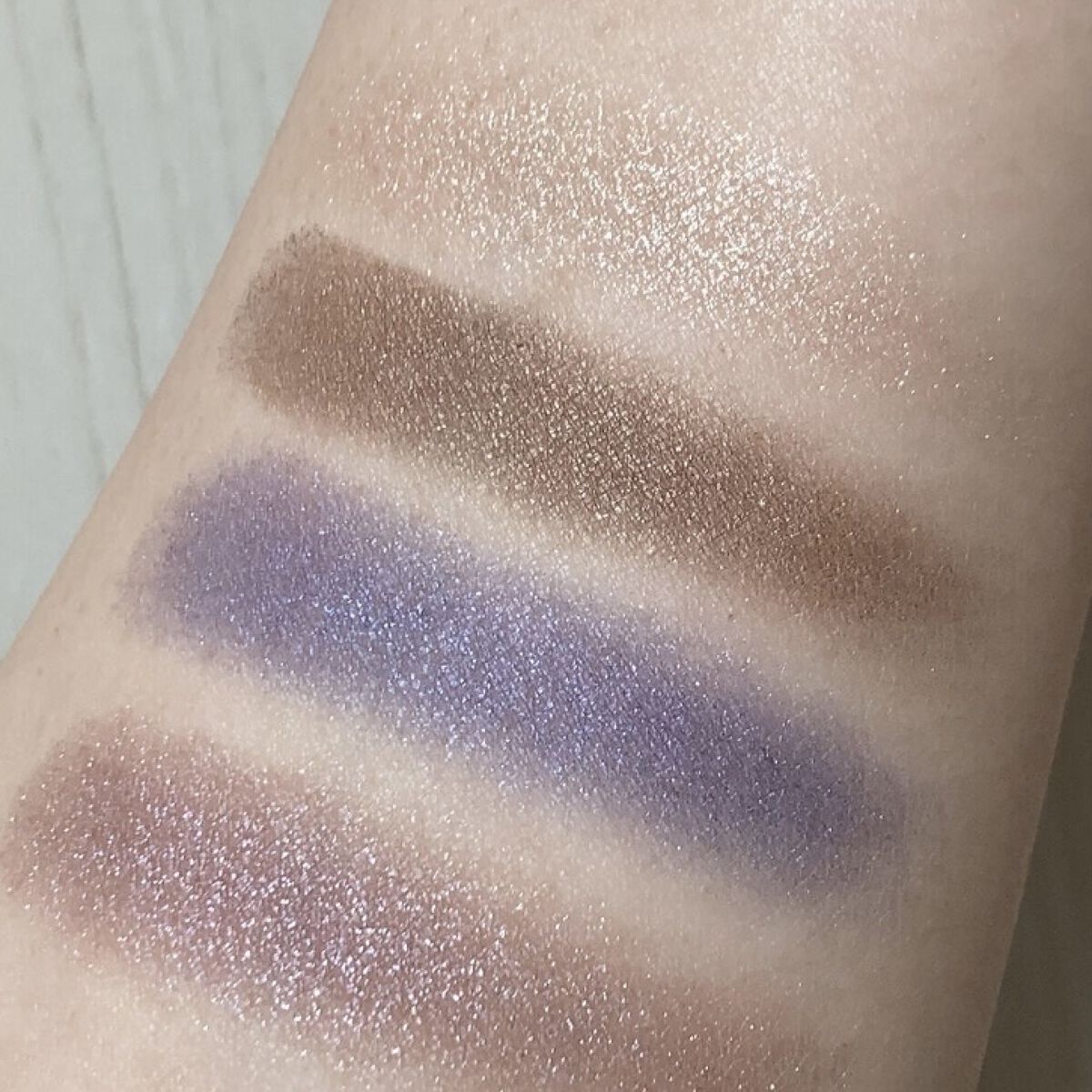 実際スウォッチしてみると凄く綺麗なカラー🫶 ブルー以外は普段メイクにも使いやすい! 目のキワのブルーは細いブラシを濡らして使用しています。 めちゃ綺麗なカラーなので引っ張り出します💙💜w
