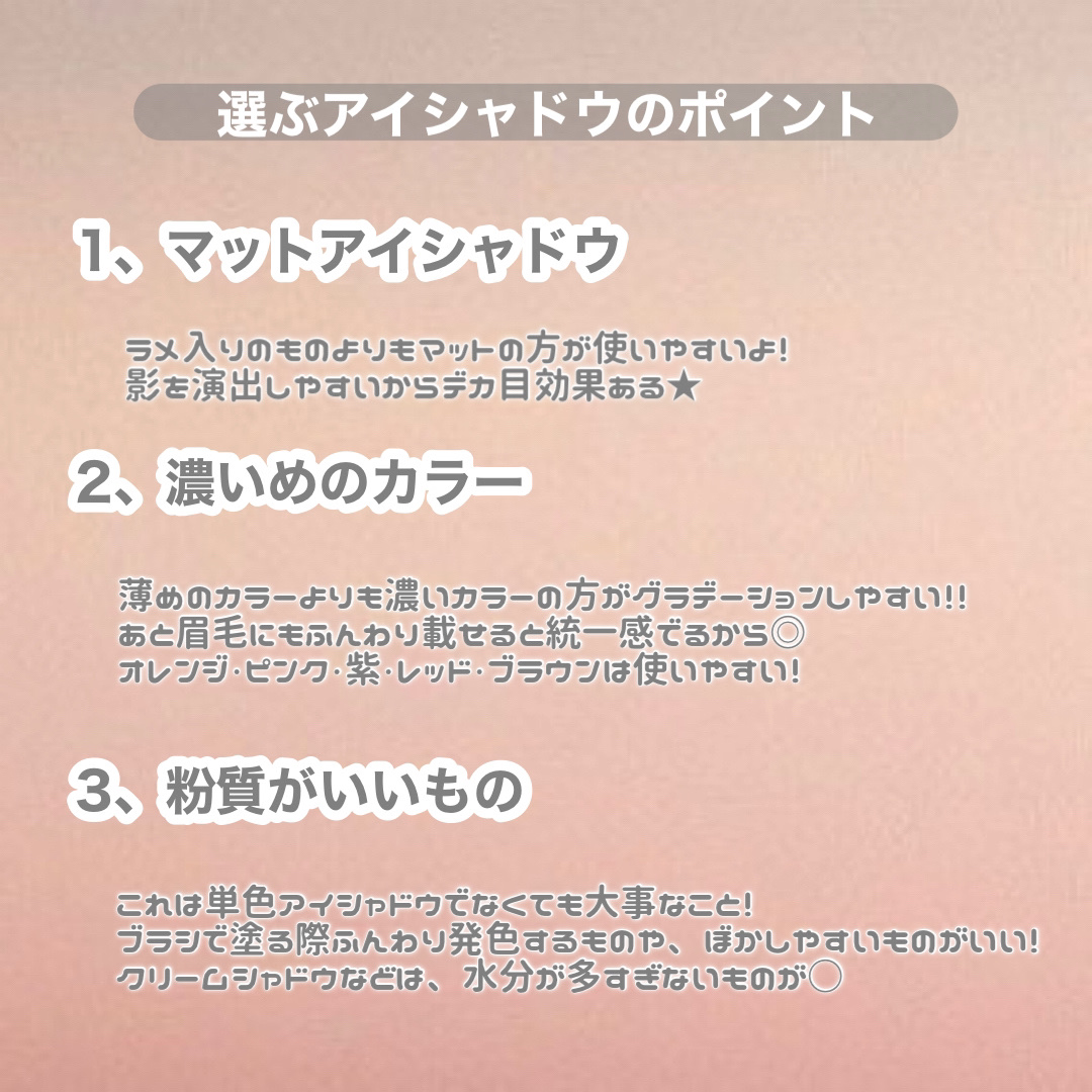このアイシャドウ、グラデーションしやすい!! 粒子が細かくて、透明感もある! このコスメ、ミネラルコスメで素材にもこだわっているんです! ここポイント高い💫 ミネラルコスメだから、KATEとかの単色アイシャドウよりはお高めだけど、アイシャドウとチークとリップに使えるからコスパいいよね! とにかく絶妙なカラーで、つけるだけでお洒落さんになれちゃう😆💓