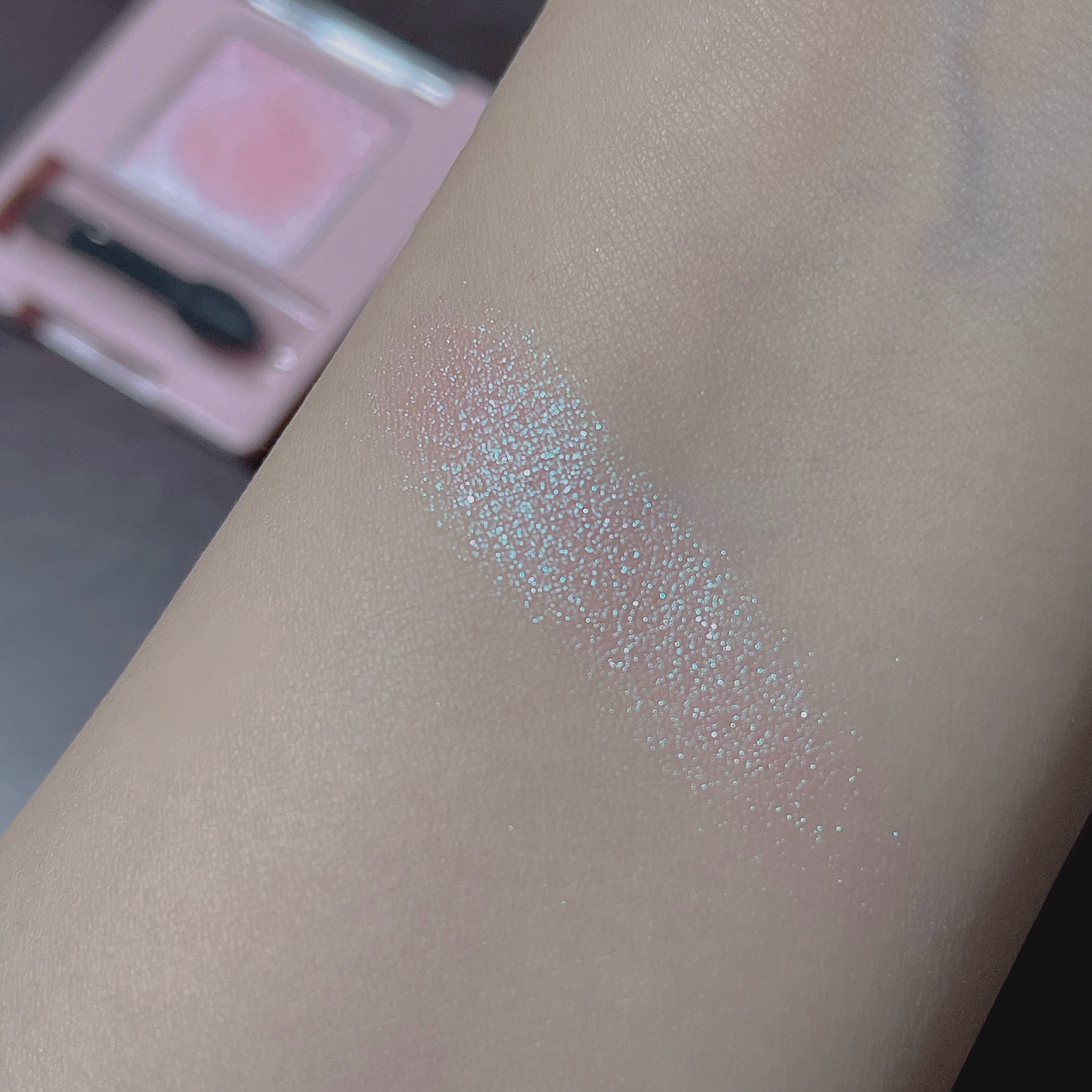 ラメ質が良い 偏光パールがめちゃかわいい 角度によってピンク〜ミント系に色が変わって幻想的 透明感のある目元になる わりと明るめの色みなので 高明度得意民以外は締め色いるかも