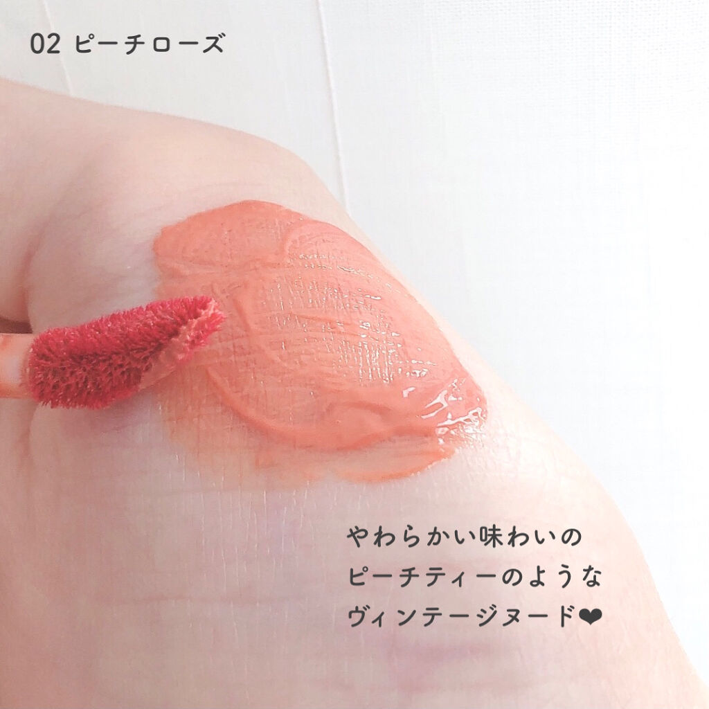 みずみずしくクリアに発色 嬉しいティント仕様で透きとおるような仕上がり 02はやわらかい雰囲気のヌードカラー ナチュラルメイクにも使いやすい 03は明るめしっかり発色ローズカラー リップがポイントメイクに 元の唇にあまり色がないのですが 02は赤みに転びました せっかくのヌードカラー リップコンシーラーを使うのが良さそう🤫