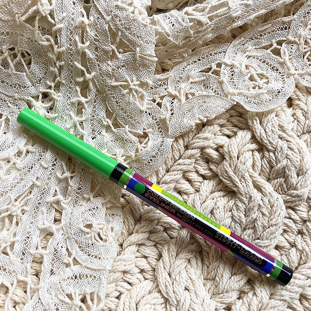 カラーアイライナー(ºωº)上からマリンブルー、スノーホワイト、アップルグリーンとなってますアップルグリーンとマリンブルーはラメが入ってなくマットな感じで、スノーホワイトは少しラメが入ってて可愛いです発色もいいし、デザインもぐっとです(*^ω...