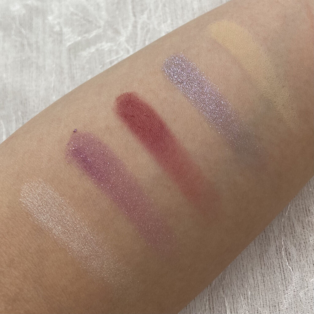 ファーストバードアイシャドウパレットは、締め色のないオーロラのような淡いカラーが入っています💜🤍 粉質は柔らかく、発色もふんわりやさしめ。 エモーショナルクリアティントは、みずみずしいテクスチャーのティント。 カラーステイ力もそこそこあります😌🤍 私は特に02.ピーチローズがお気に入り。 ナチュラルなベージュカラーなんですけど、顔色が悪くならず、お洒落な仕上がりになります💕
