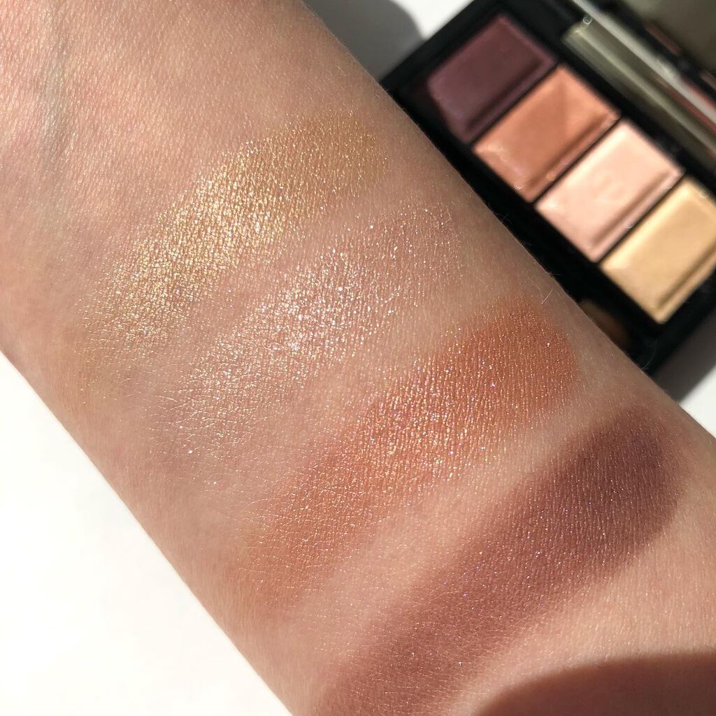 ケースは高めで買うの躊躇したけど とりあえず初めてなのでセットで購入したよ𖤐 粉質はしっとり柔らかめ。 けっこう薄付きで右から重ねていくだけで 綺麗なグラデーションが作れます😊 ラメ感も上品で大人っぽい目元に仕上がる♡ このパレットは薄付きだからこそ チップを使った方が発色良くて私は好き♫ シーンを選ばず使いやすいパレットだと思います☺️💕