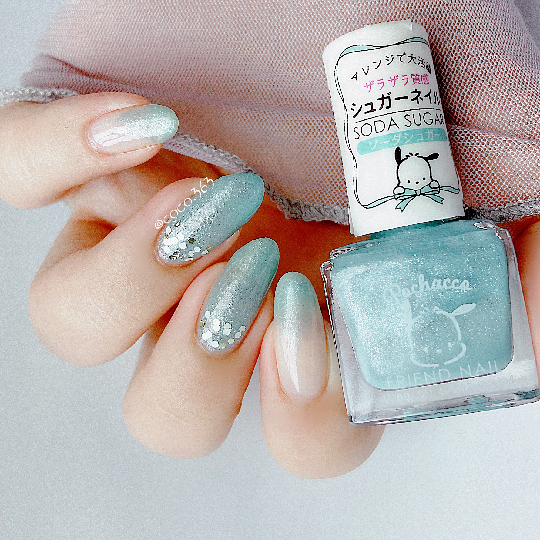ざらっと質感が可愛い〚ソーダシュガー〛を使用し夏っぽネイルに𓂃◌𓈒𓐍 ダイソー フレンドネイル -各¥110 〚シャンパンバルーン〛 〚ソーダシュガー〛 〚ベースコート〛 2023年度の公式アンバサダーを務めさせていただくことになりました☺️