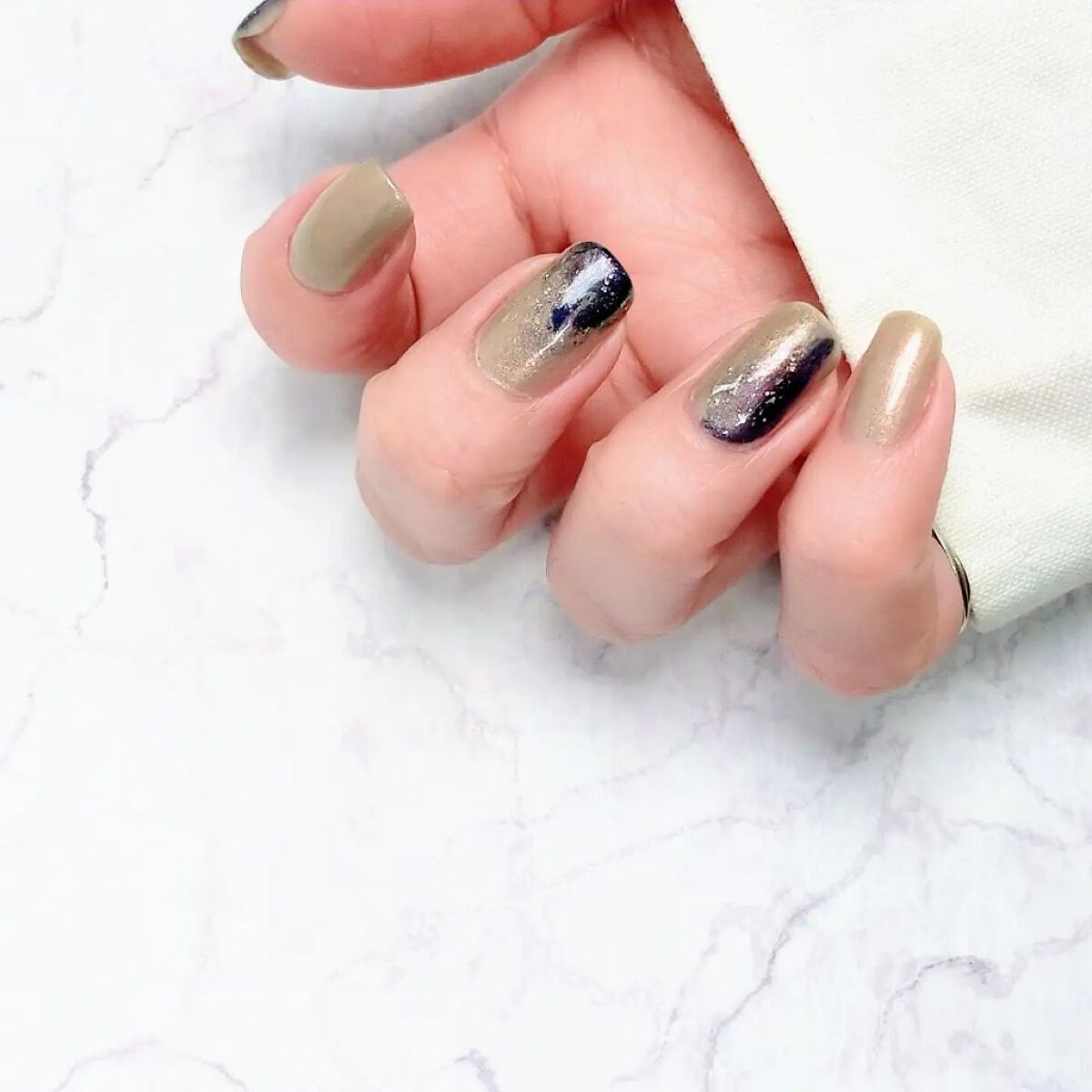 THREEのキラキラベージュとORLYのキラキラネイビーの組み合わせ❤️かわよ❤️❤️●THREEネイルポリッシュ・122CIRCLEOFSTARS●ORLY20788#ハイオンホープ●#フレンドネイル・1-39ブルーリキュール●エレガンスクルーズ#フローリックネイルラッカー・104#セルフネイル初心者#ポリッシュ派#ポリッシュネイル#セルフネイル部#ポリッシュネイル部#セルフネイル練習中#パラドゥネイル部#パラドゥ#ダイソーネイル#プチプラネイル#キラキラネイル#エレガンスクルーズ#エレガンスクルーズネイル#threecosmetics#threenailpolish#threenail